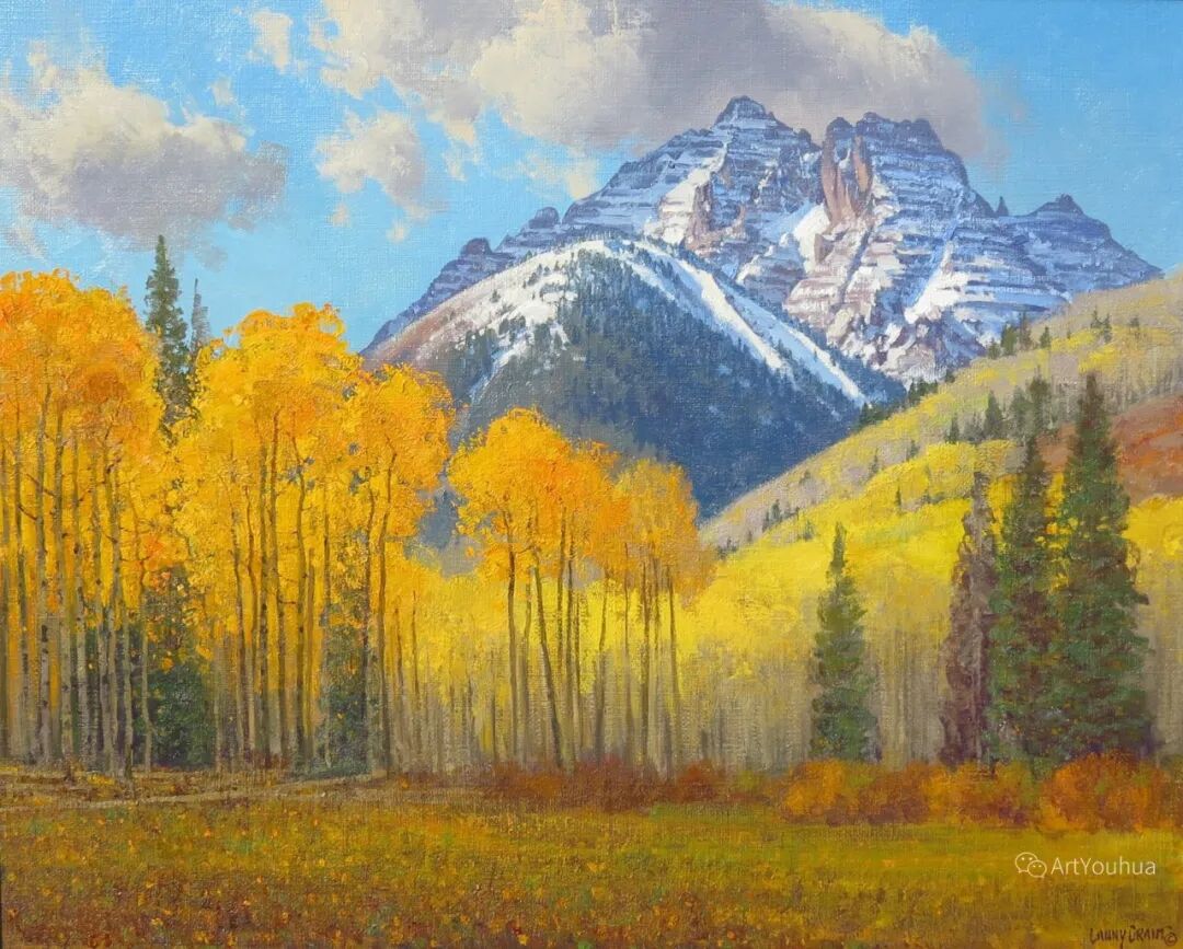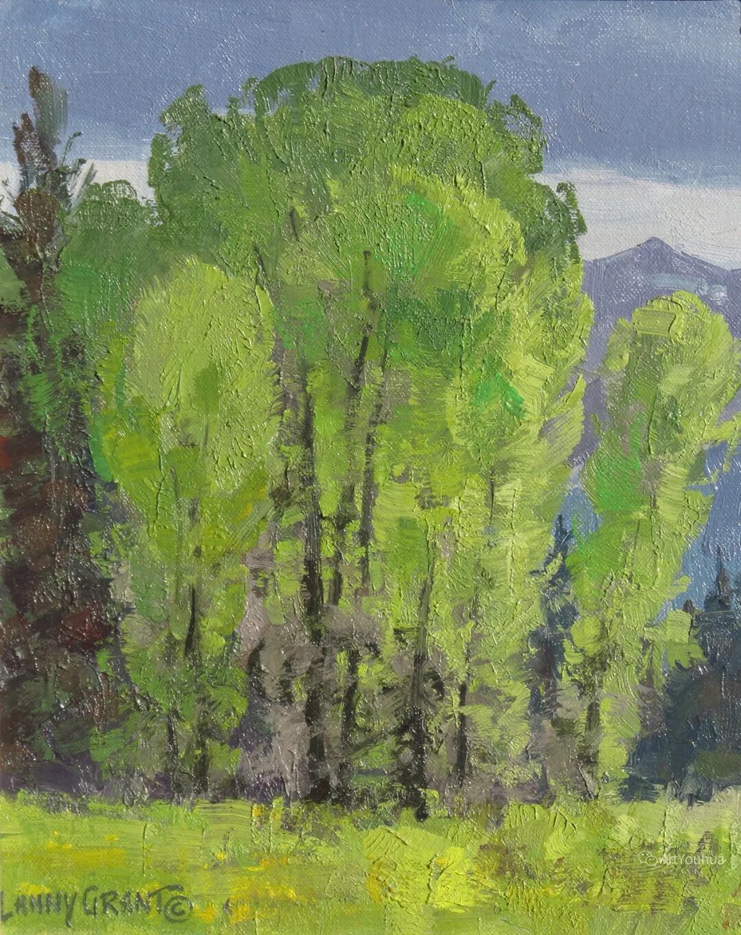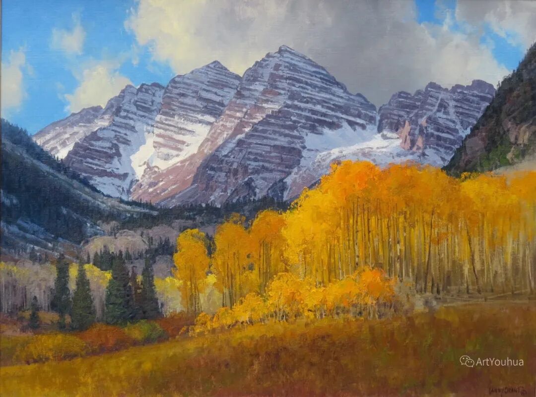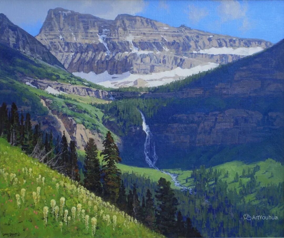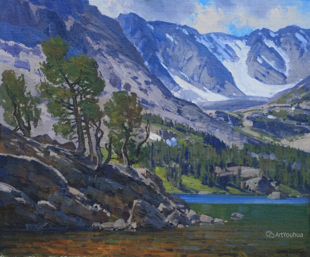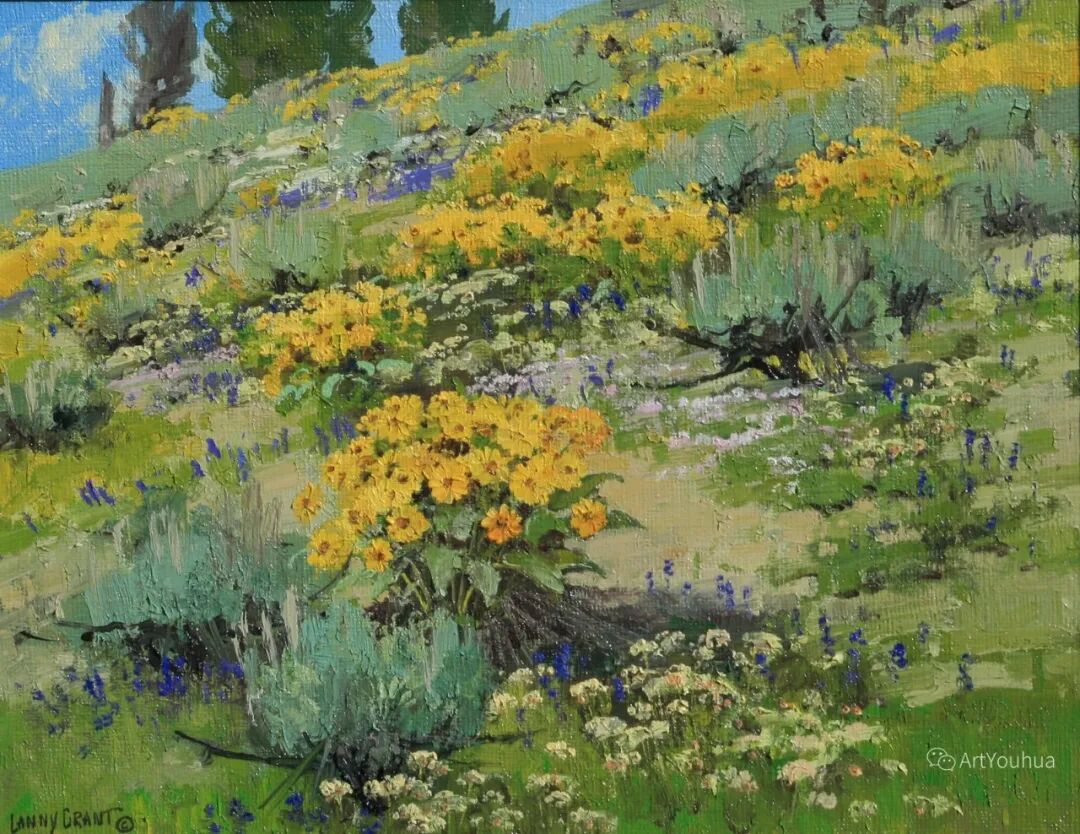兰尼·格兰特(Lanny Grant,1953-),美国画家。他居住在科罗拉多州西坡小镇Silt附近--离他在父亲的桃子谷牧场长大的地方不远。家庭露营和钓鱼旅行变成了写生旅行,这是早期的艺术努力,因为兰尼对西部科罗拉多州的高地产生了热爱。大部分是自学成才,他在10岁时开始画油画,并通过专注的工作和实践发展成为一名优秀的艺术家。1965年,兰尼遇到了新墨西哥州的艺术家本·特纳,特纳画山地风景的能力给他留下了深刻印象。高中毕业后,格兰特于1971-1972年在科罗拉多州阿拉莫萨的亚当斯州立学院学习,在那里他获得了艺术史的知识并学习了生活绘画。