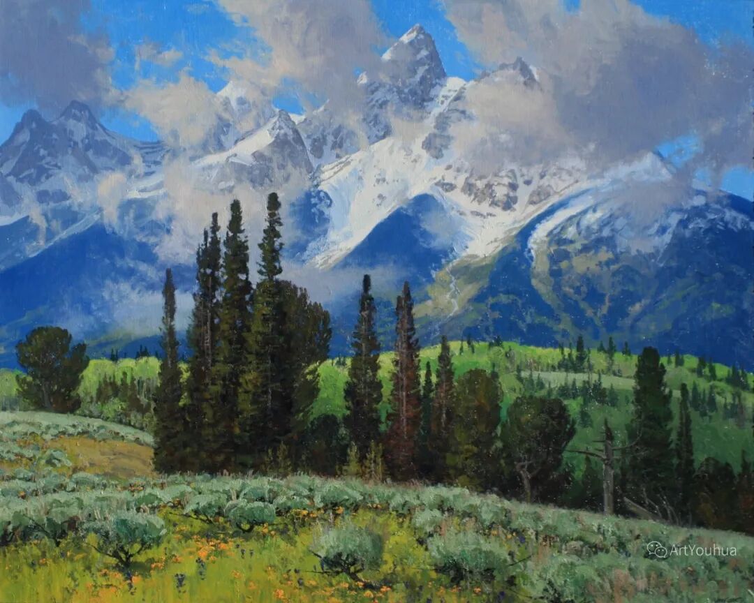 高山的光线与色彩之美,在他的画作中得到了体现!