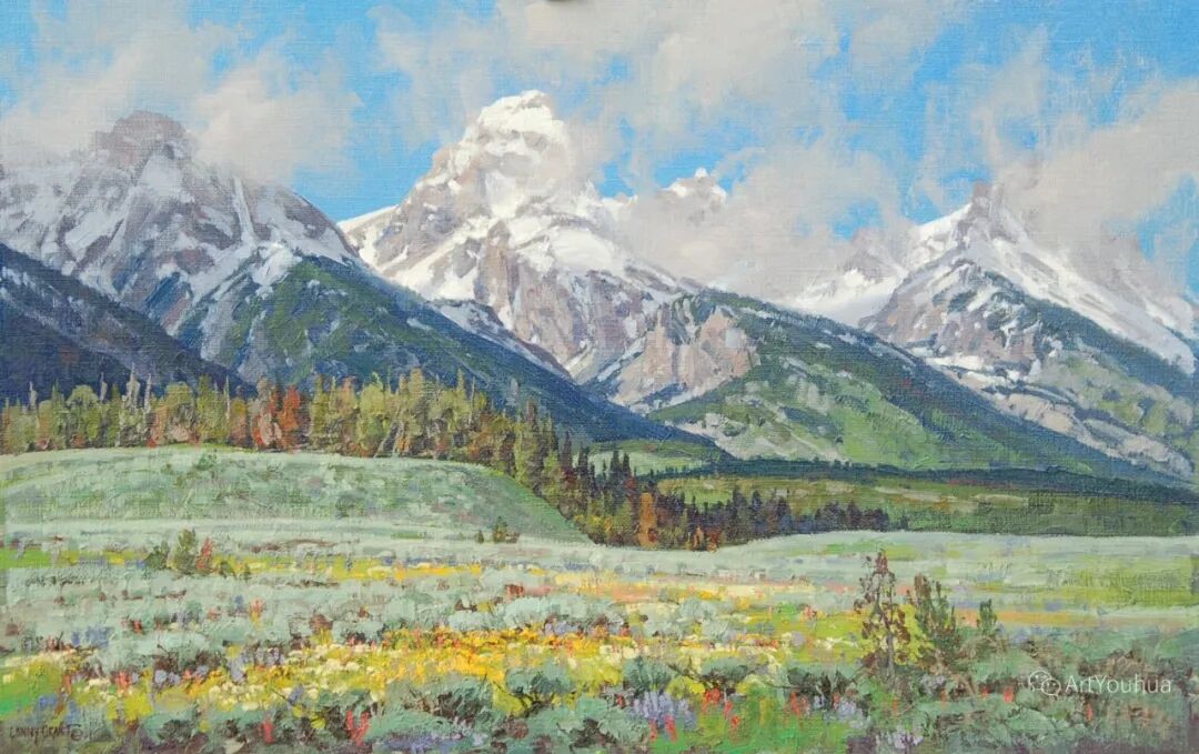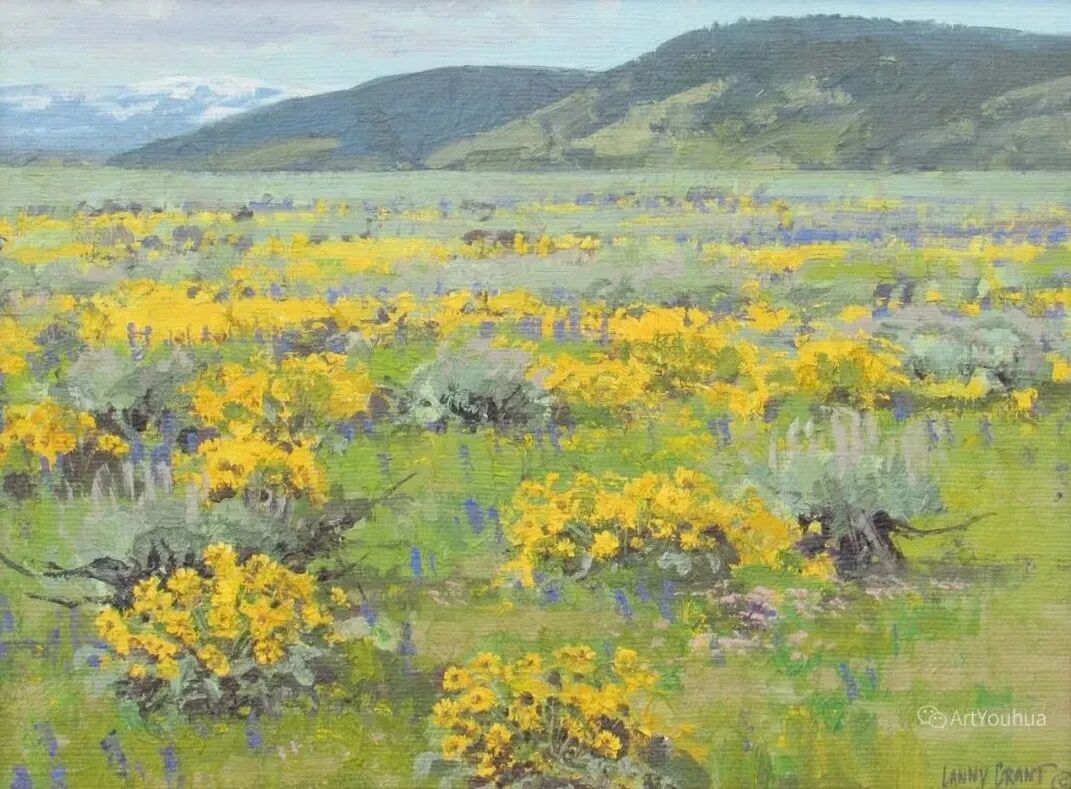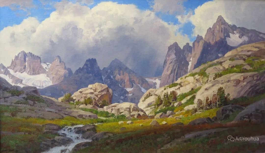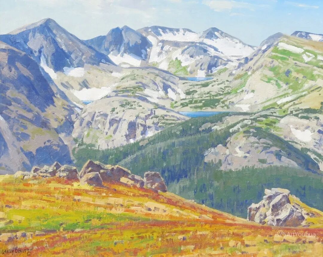 格兰特多年来一直致力于户外绘画,从而使他准确地翻译了高原地区的许多情绪。格兰特总是被偏远和野生的地方所吸引,他继续探索新的绘画区域,包括怀俄明州广阔的风河山脉和西部的其他地区。
