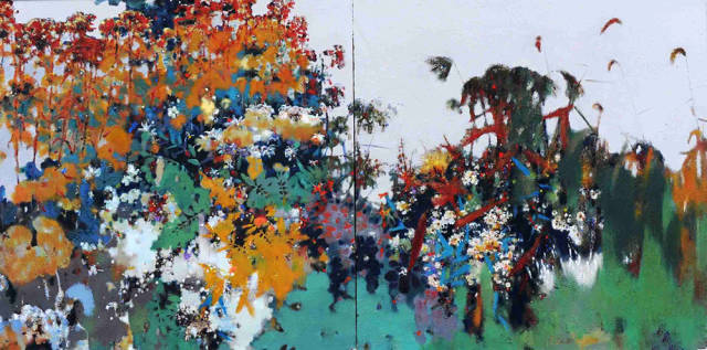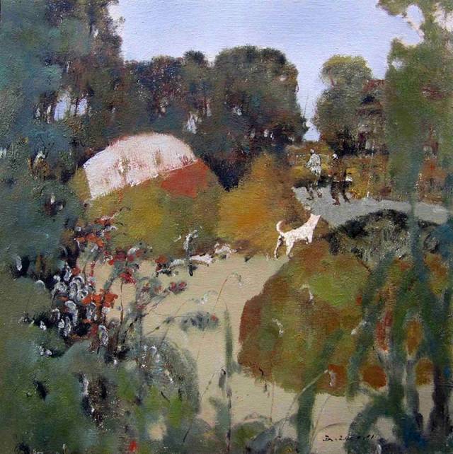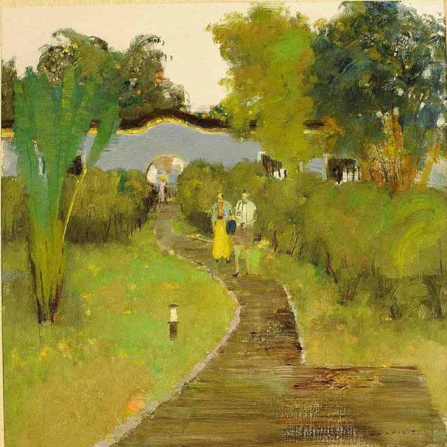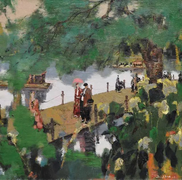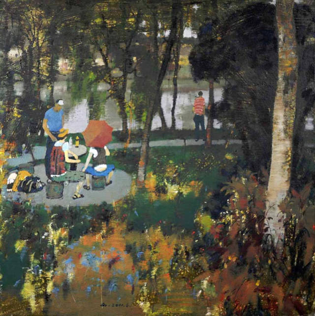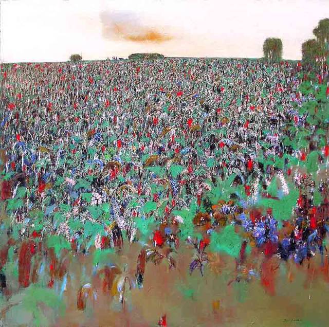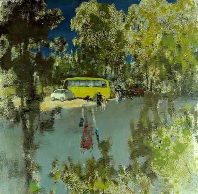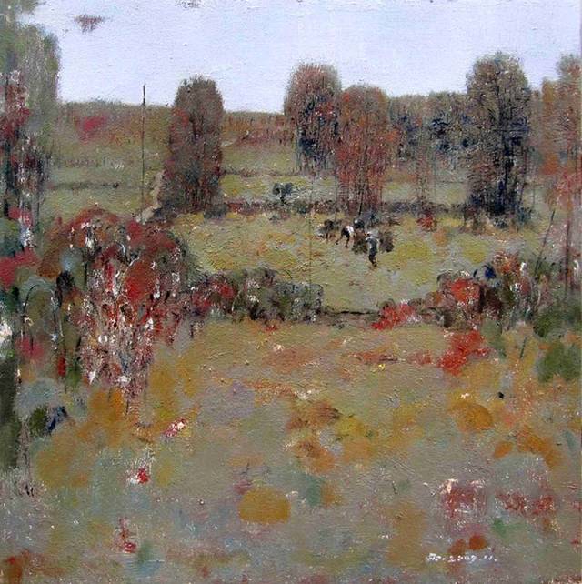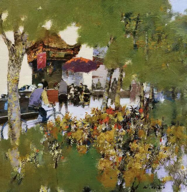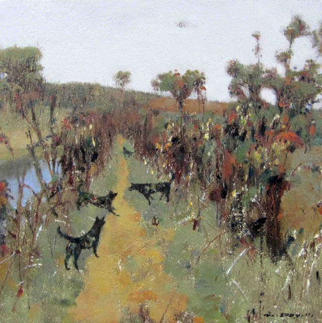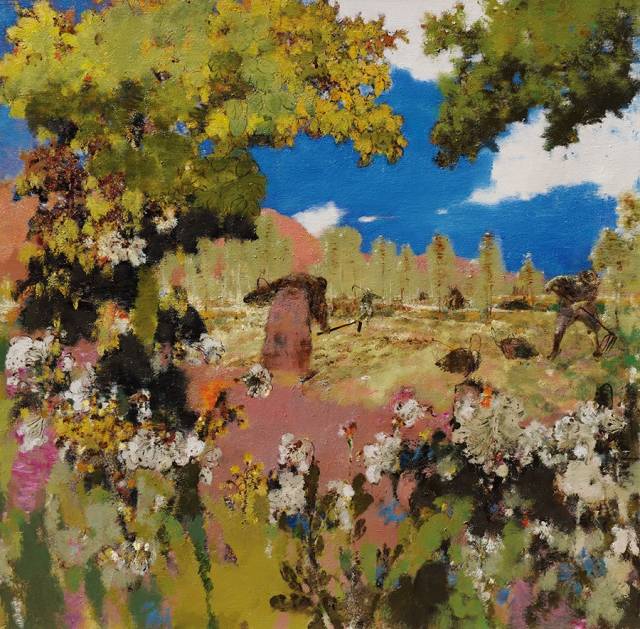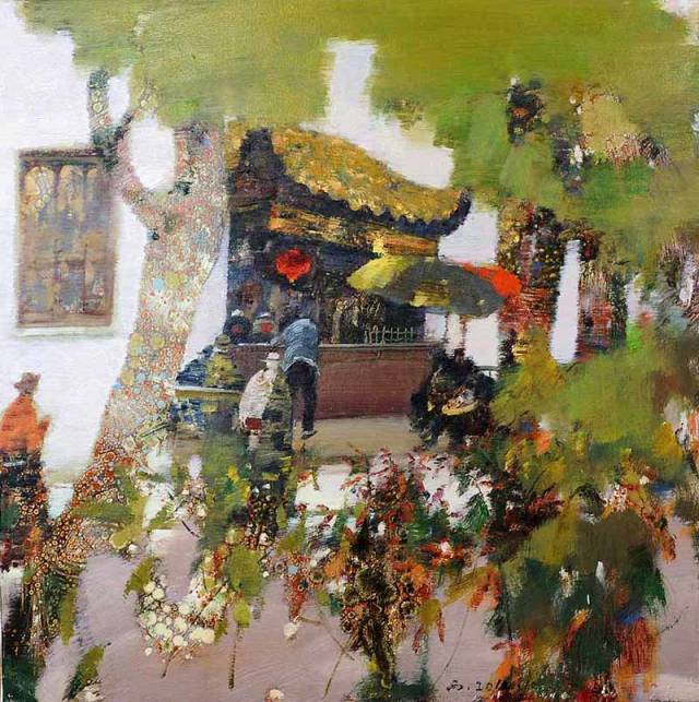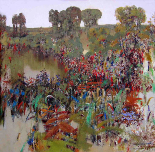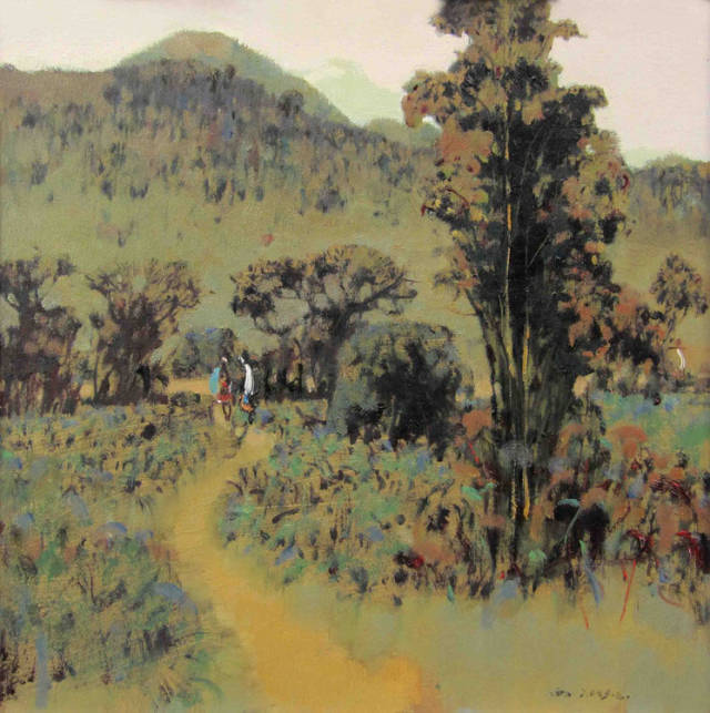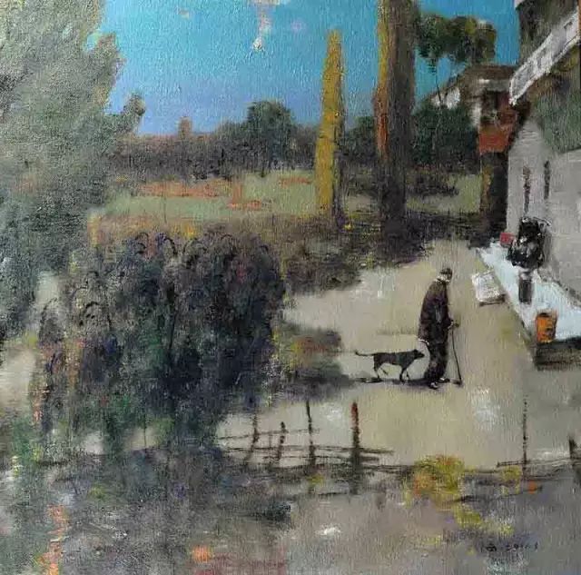安放自己的角落,一处精神家园。不断放弃、不断求新,不拘泥客观风景的局限,主观创作。把油画色彩技法与中国画的意境构图结合,赋予油画一种中国画的“高深幽远”意境。