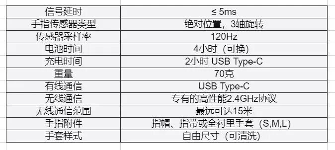 Quantum Metagloves的官方规格如下: