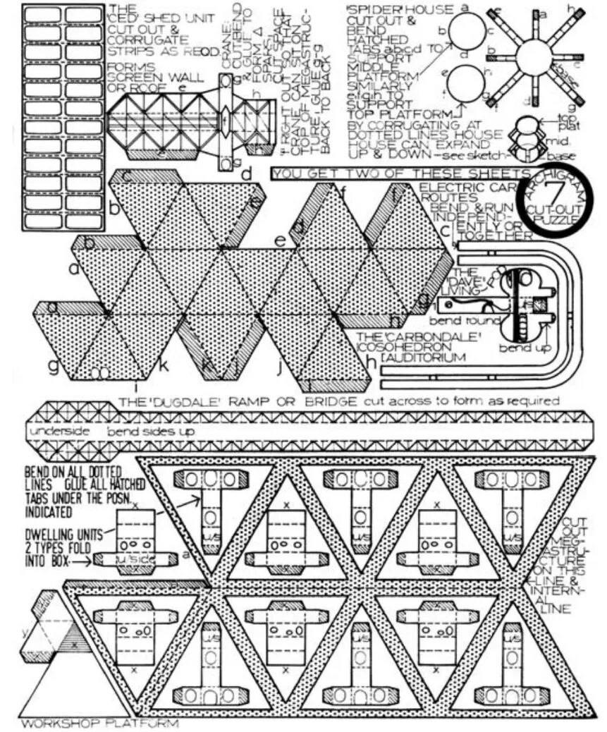 ✸ ARCHIGRAM的探索不仅仅在城市与建筑尺度,其设计互联的思维模式不仅仅出现在建筑设计领域,在产品设计领域和生活方式策划上也有造诣。PETER COOK在1960年代设计的INFO - GONKS项目,表达了在晶体管大流行十年后,ARCHIGRAM对一种个人的新型生活架构的探索,他们认为改变一个人对环境的接受度比改变环境本身更为容易,于是从教育目的出发,ARCHIGRAM与CEDRIC PRICE一样,进行了众多的设计实践。