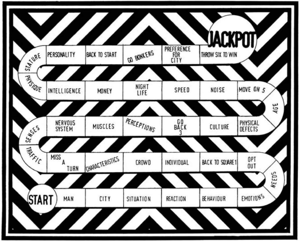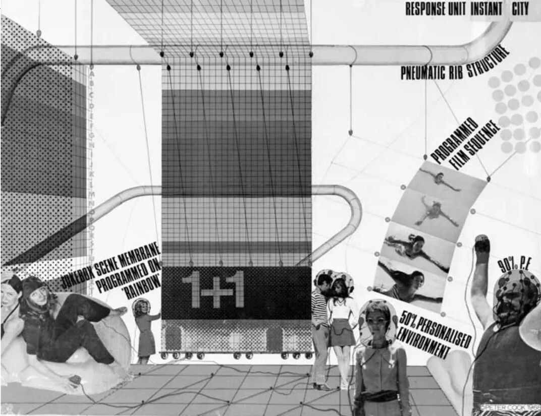 ✸ 1950年代和1960年代的先锋派艺术也正在表达这种非确定性,先锋派绘画的内容创作更加着眼于信息,而非形式本身。先锋派创作的内容转变与“LIVING CITY”的城市意识形态异曲同工,一种全新的立体的未来生活图景呼之欲出。在那个年代,如同当下,很少有人意识到高速引入的城市新貌 - 无处不在的霓虹灯、店面广告、花哨的装饰、前卫的艺术与复古的思潮装点着城市,充满着视觉冲击。这些无意识中改变的视觉冲击本质上是信息冲击,是信息的多样形式,他们的传播媒介的本质是通讯方式,电影、图像、声音和城市环境都构成了通讯方式的表现型,区别于上一个百年的冰冷城市的城市情境已然出现。ARCHIGRAM在此背景下衍生出了自由不确定的城市游戏空间规则。