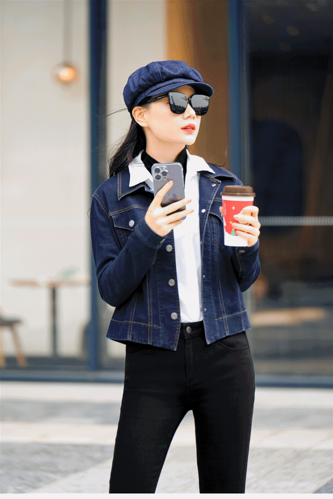 正肩版型,线条感强,上身挺拔有型,会颠覆你对传统牛仔外套硬且不舒服的认知。