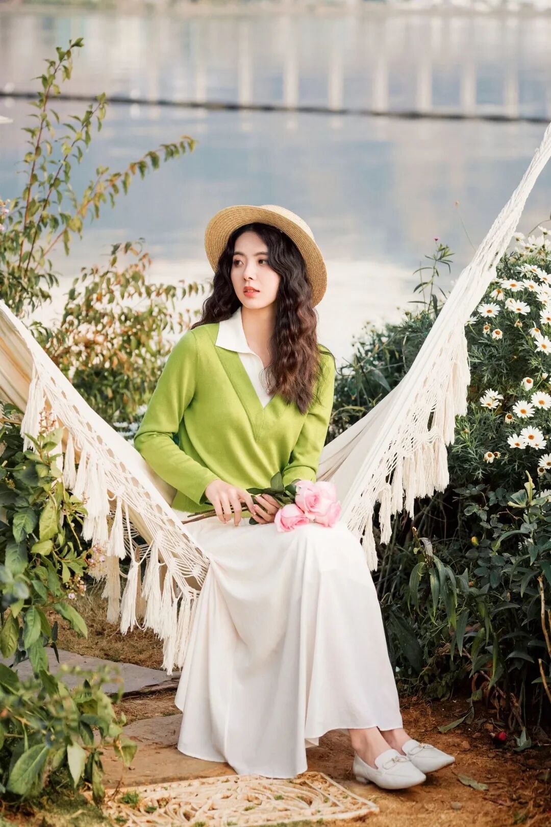 浅绿色生机盎然,配白裙子温柔又浪漫~