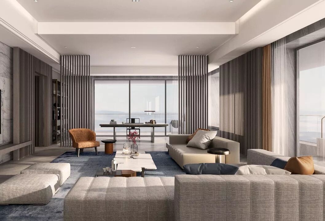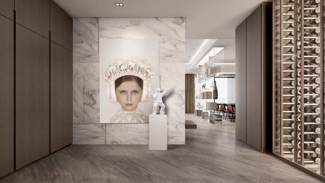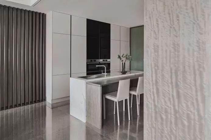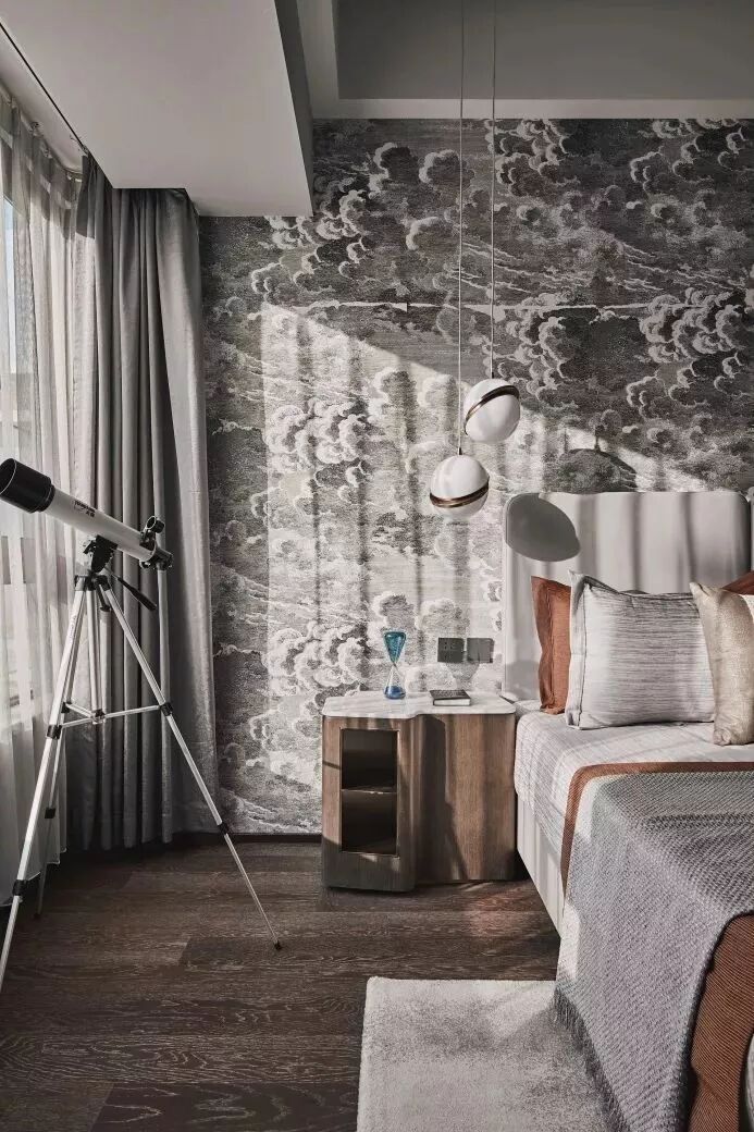云卷云舒的灰色墙纸带给居者高级的艺术视觉体验,东方的雅致澄净与西方的时尚前卫在此糅合出平衡而独特的亲和感与活力感。