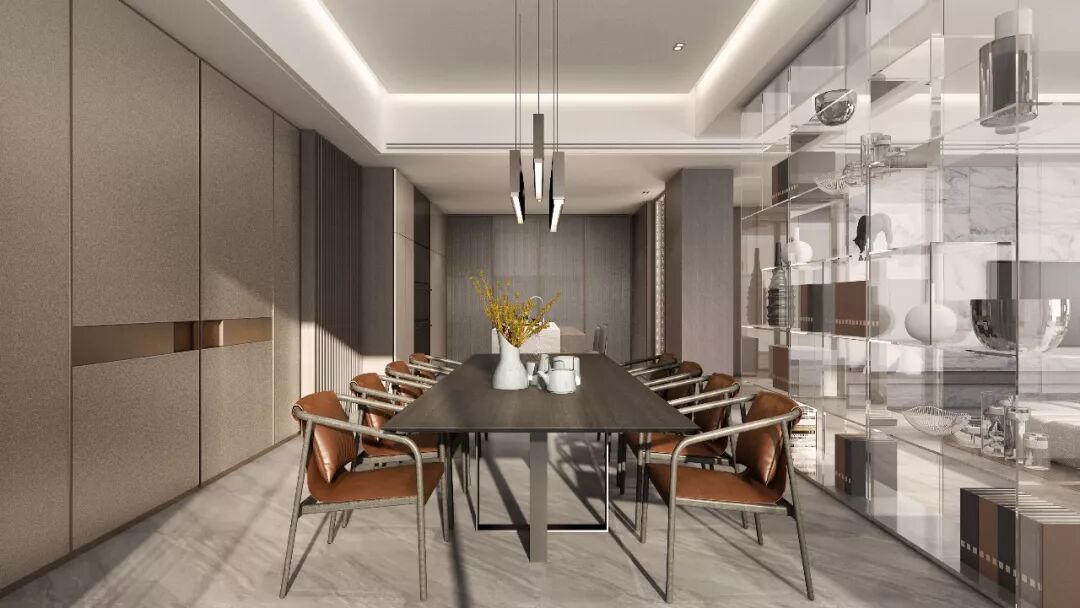 深色的皮质坐具与靠枕体现了别具一格的品位,深浅颜色与材质的碰撞,打造出空间的力度与高级感。