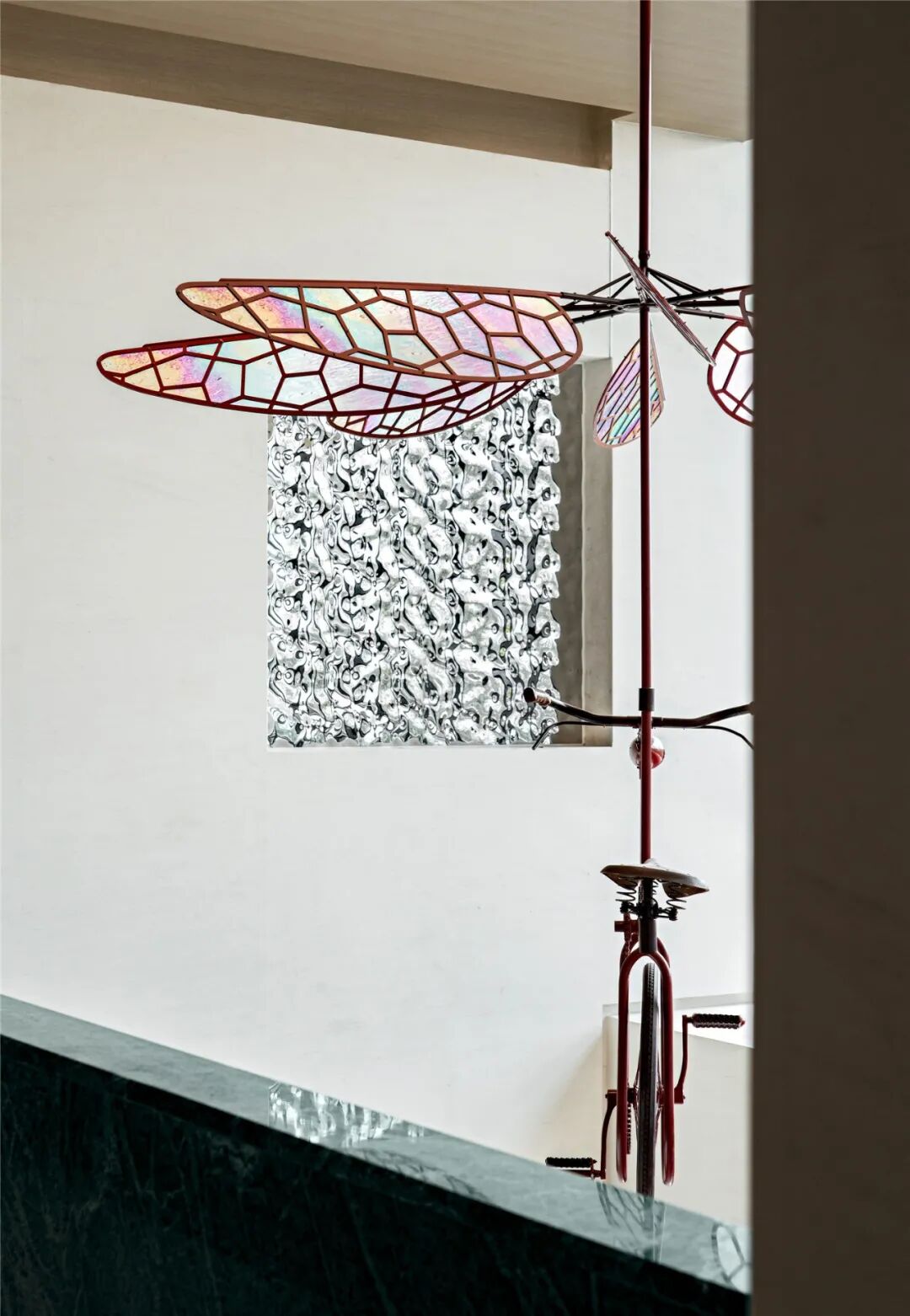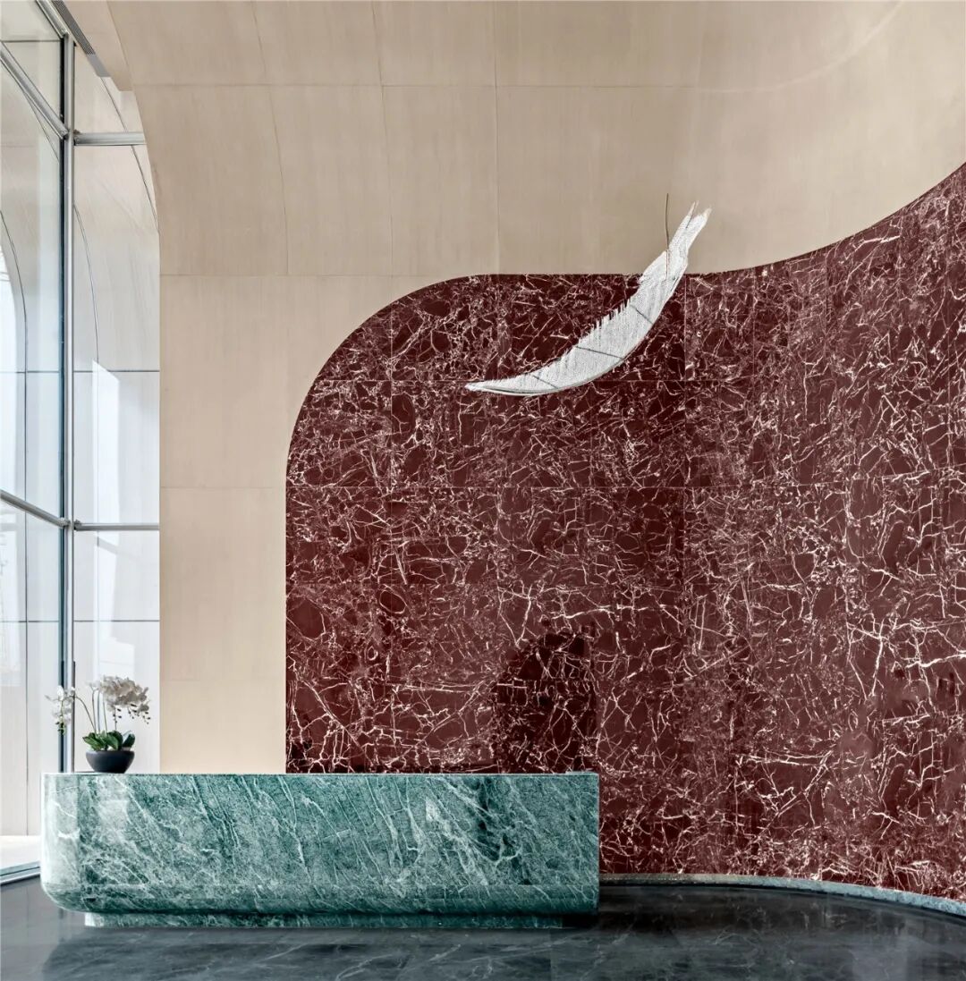 创造了接待大堂的生命之舞——羽毛装置,
