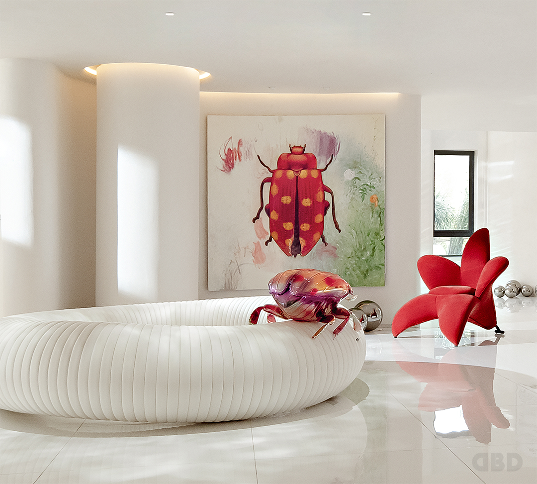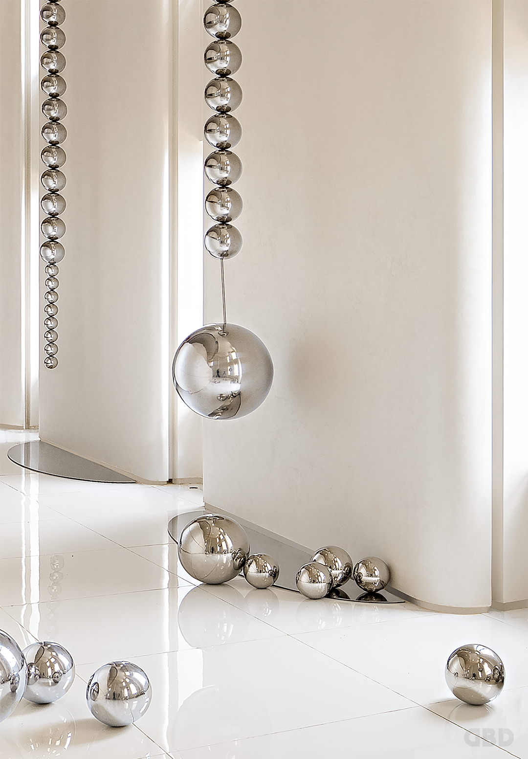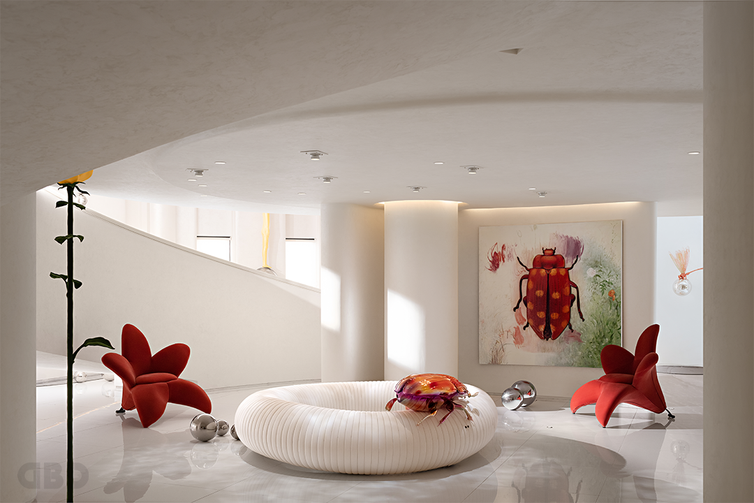 设计师营造出“清晨的阳光,照在雨露上”的场景,犹如精灵将一把水珠随意洒落在人间,形成了错落有致的层次,水珠掉落之处,链接着所有的艺术品。