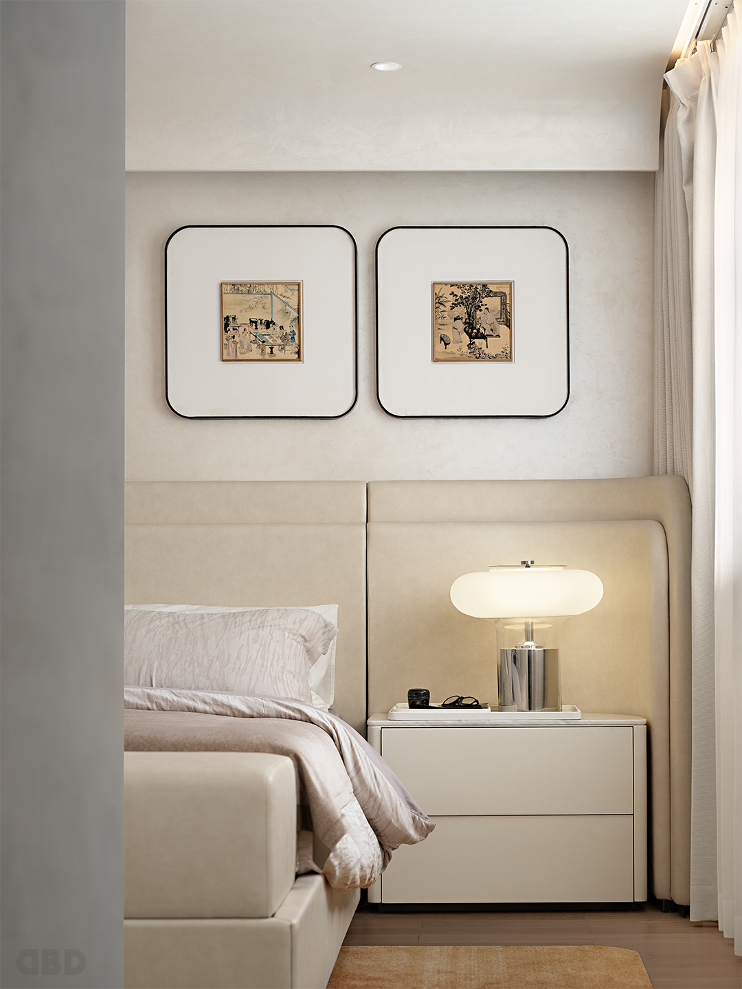 侘寂(Wabi-sabi)源自小乘佛法的三法印,既是一种思想或美学,更是一种世界观的呈现。主卧营造了侘寂般“质朴而原始”的氛围,遵循“Less is more”的理念,碰撞出禅意的生活美学。