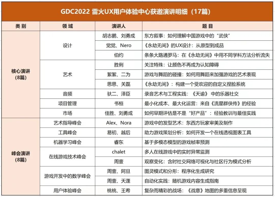 最新消息:雷火UX新增入选一场演讲!最终入选场次增至17场。