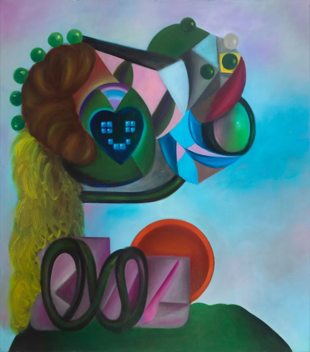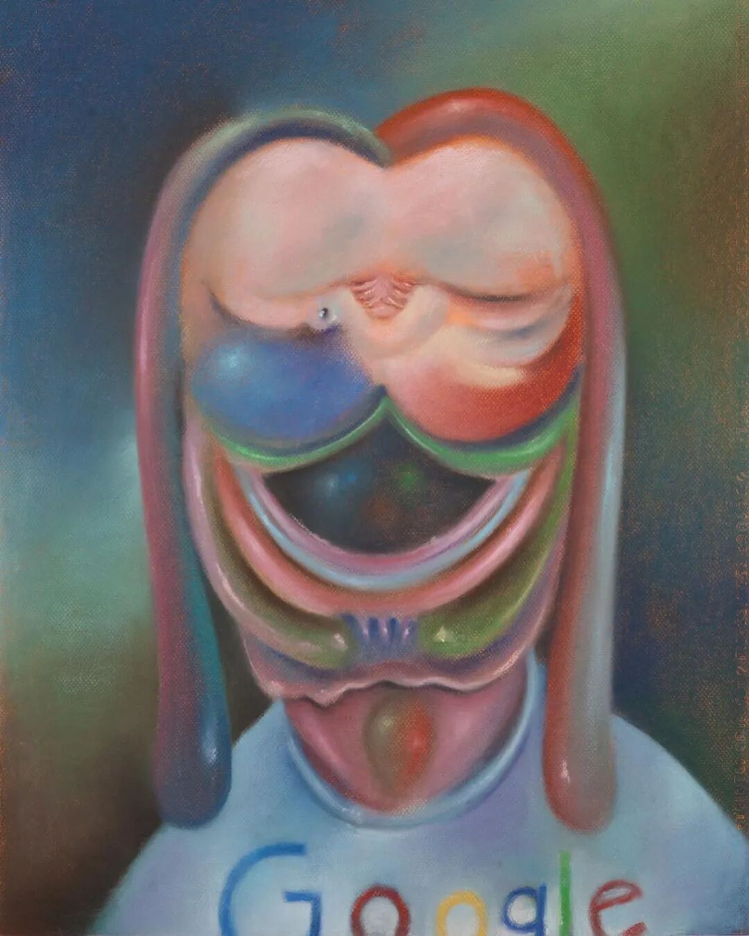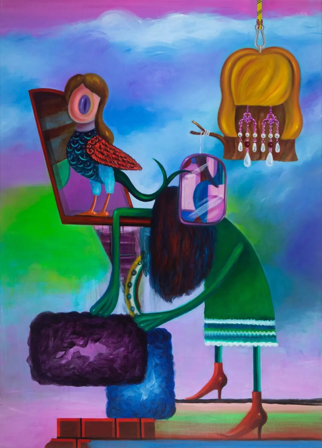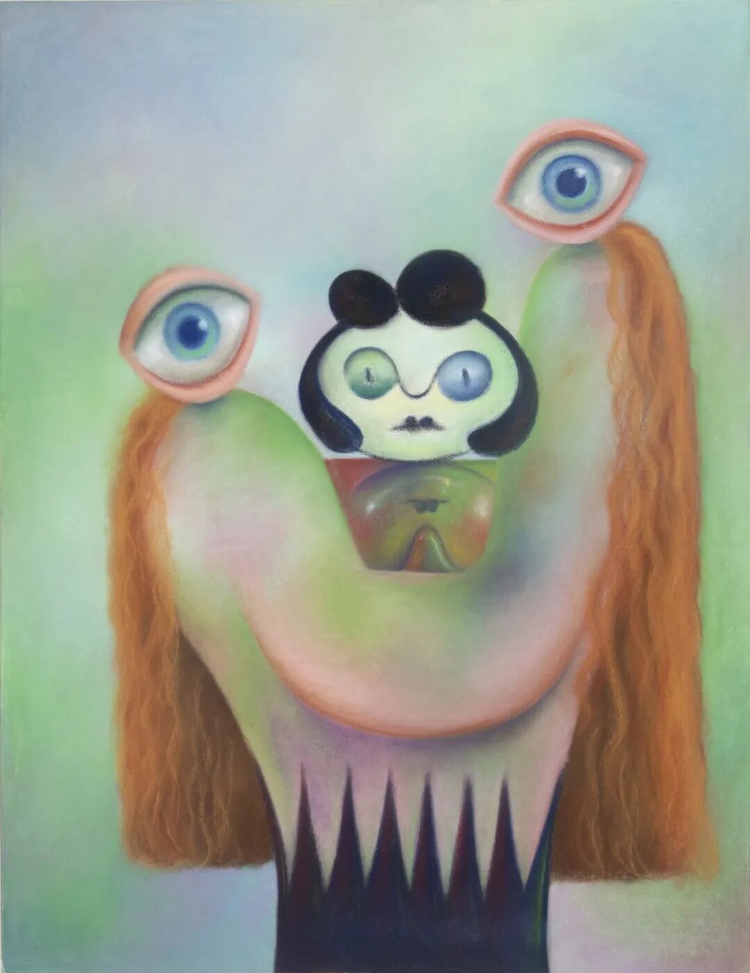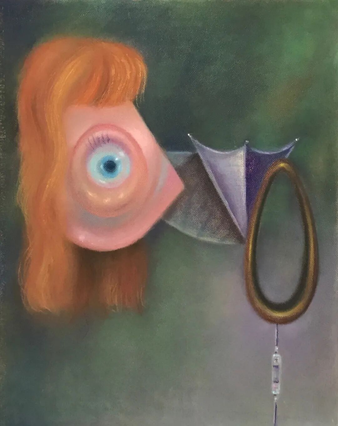 在这些模糊的人物和物体面前,我们唯一的文本和客观线索就是标题,这是一个令人不安的、荒谬的句子,它将我们引向超现实主义写作,标题和表现具有一种任意的、异想天开的关系,除了视而不见和盲目相信我们所见之外。