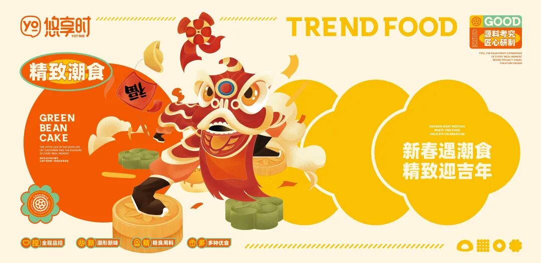 搭配香酥黄、健康绿、御食黑等中式传统色彩