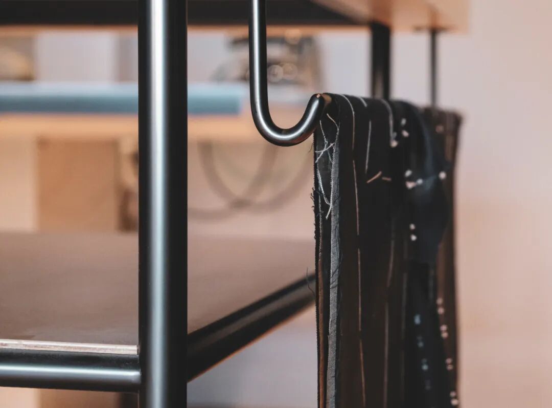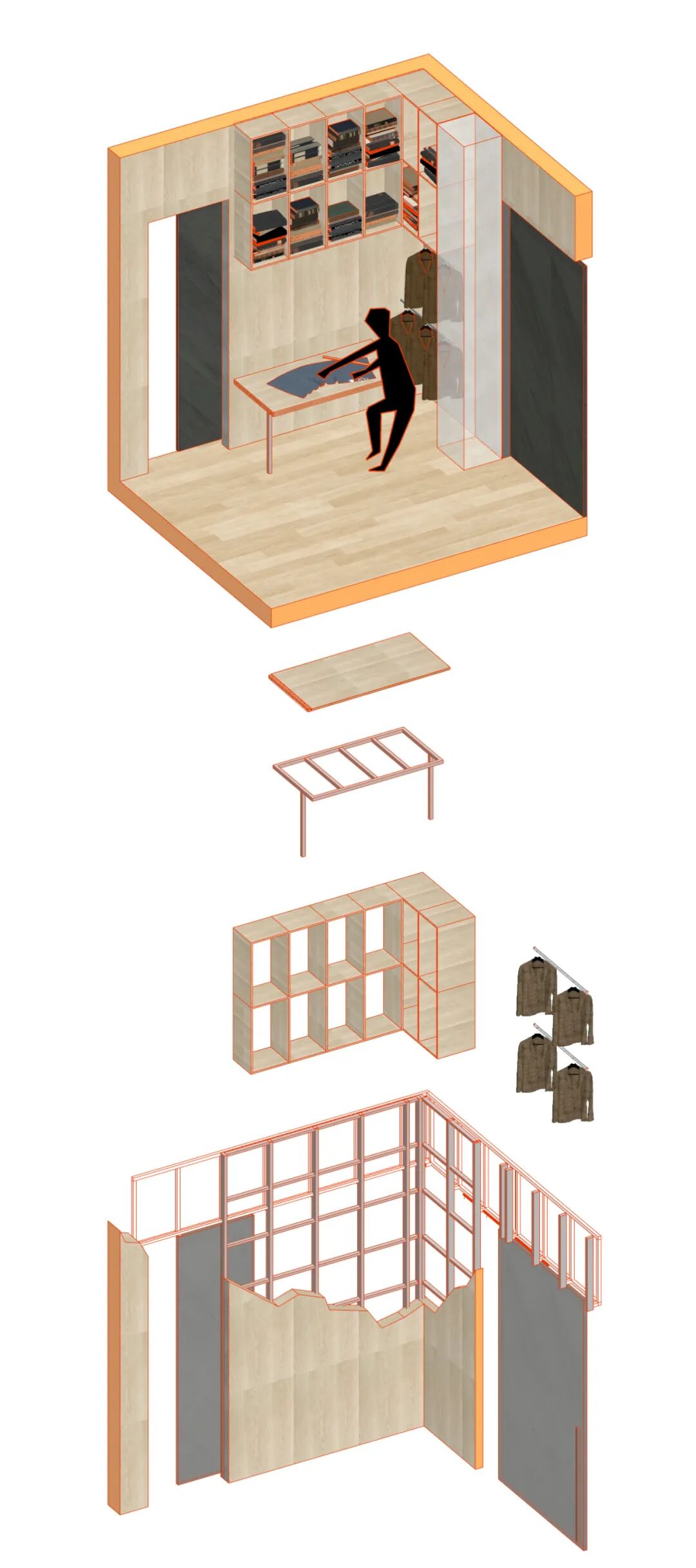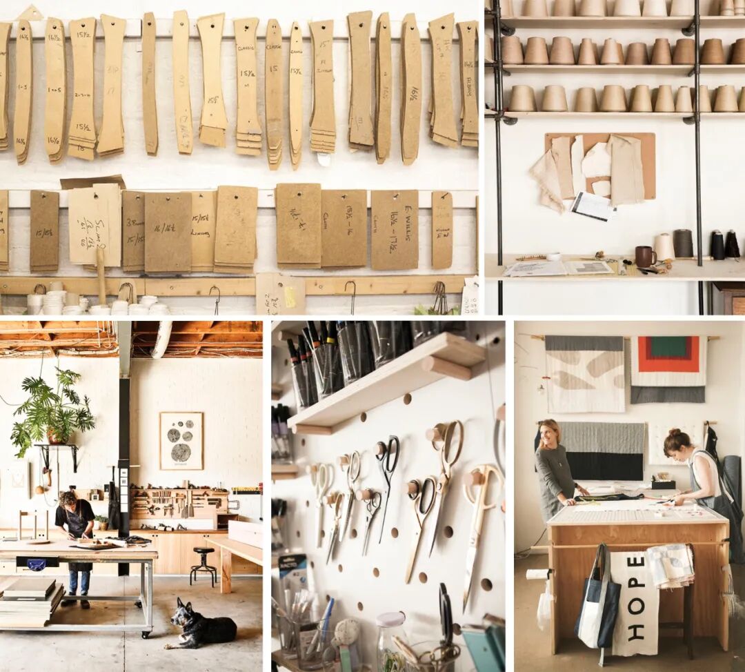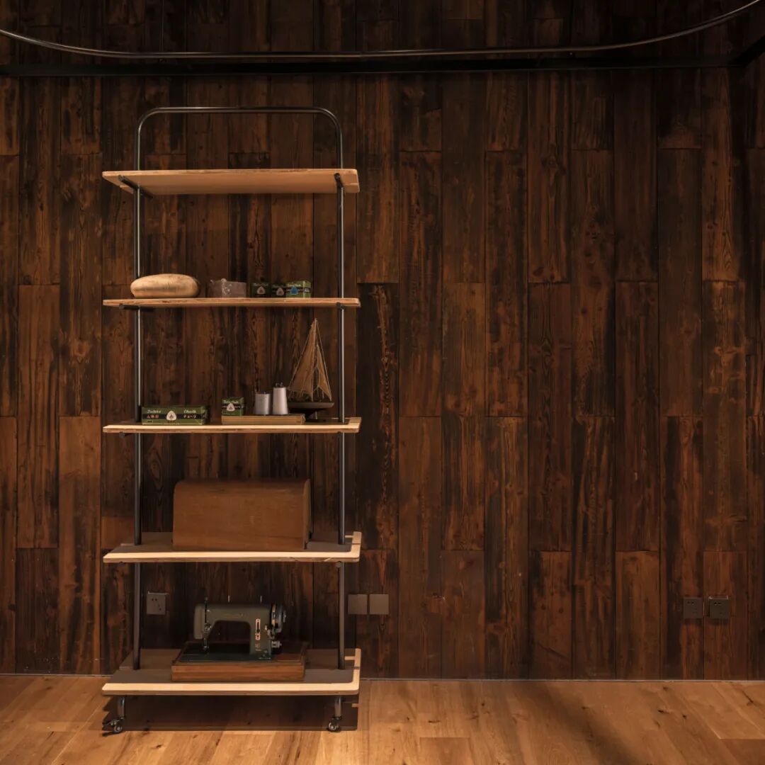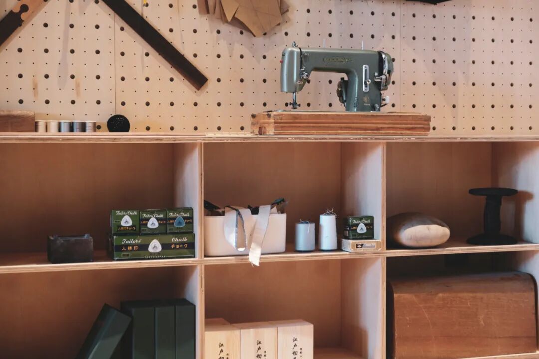 我想象那个有点旧时光的场域;想用的材料和形式就从心里自然的流露出来。手工的做法,手工的材料,一个能经得住时间考验的“裁缝铺”就出现了。几年以后,那些可以随心使用的洞洞板和置物架被工具和材料越塞越满,但还没失了秩序,这可能就是一个手艺人的快乐。