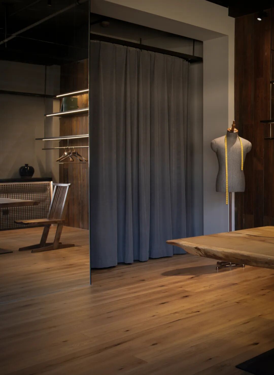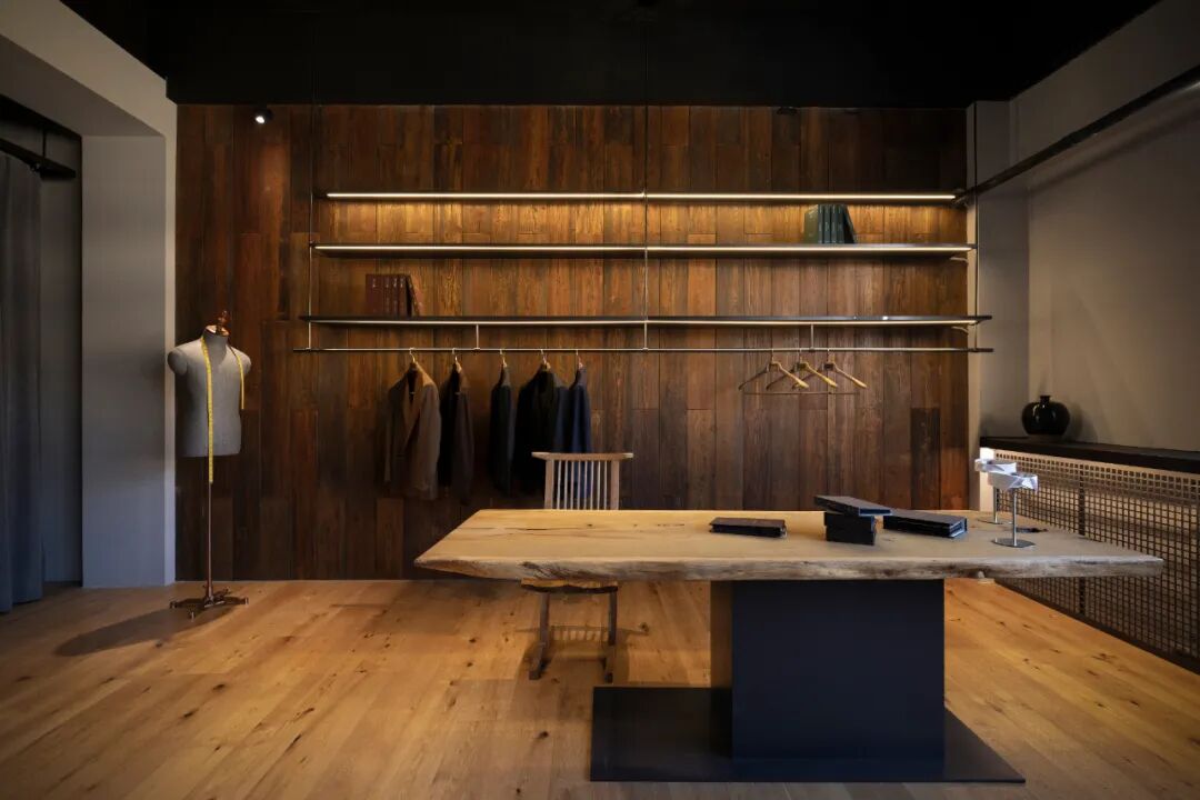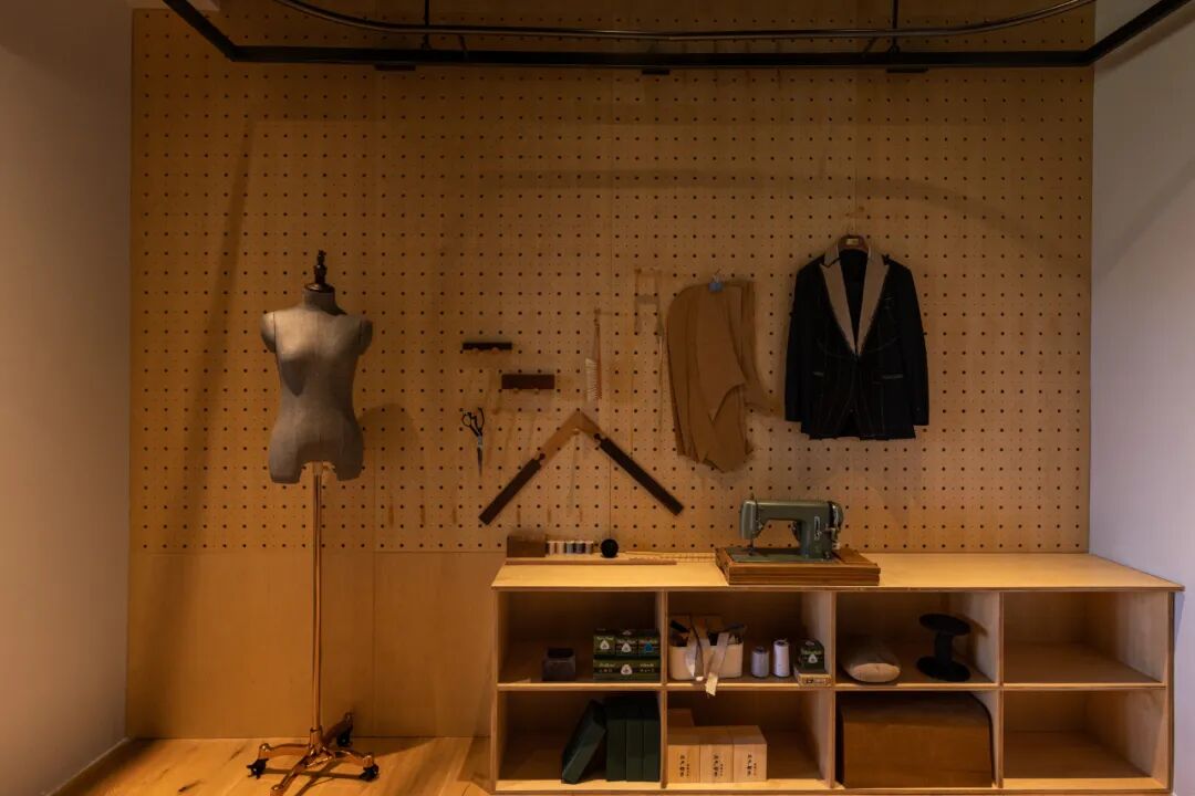 主理人苏哥,入了意大利西装的坑,选择下场做手艺人。坚持用好的料子、长的时间、按自己的规矩去做一件磨功夫的事。这本身就是个逆时代的样子,怎么去给这个做定制的定制一个属于他的空间,确实是个有趣的挑战。