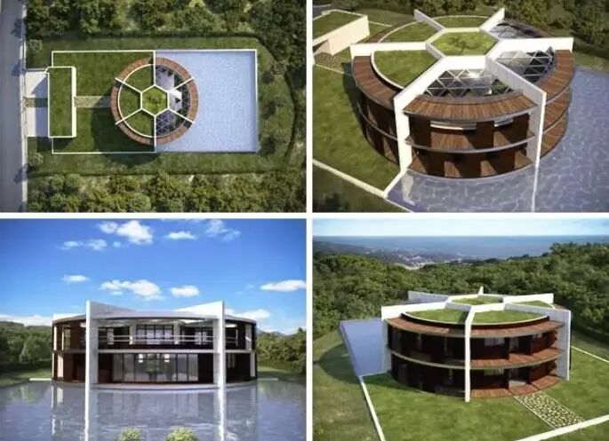 在建筑师队伍中,也有一位梅西的“迷弟”——路易斯·德·加里多(Luis de Garrido),他为梅西设计了一座“生态豪宅”,这座外形好似一个巨大足球的建筑,分为左右半场,屋顶一半是草坪,一半是用来反射自然光的玻璃,既猎奇又豪华,它还是一栋完全节能环保的建筑。