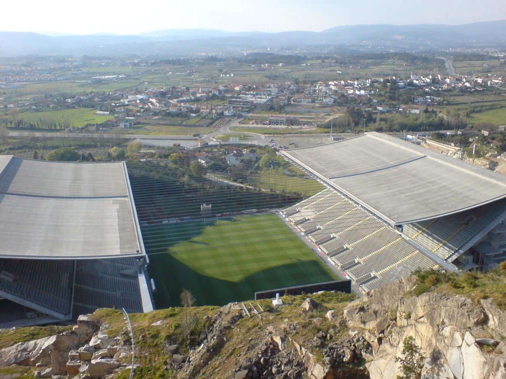 布拉加市立体育场位于卡斯特罗山北侧一个古老的石灰石采石场的险峻地形上,设计灵感来自秘鲁本土的吊桥,球门后面没有看台,让自然地形成为足球比赛中的主角。