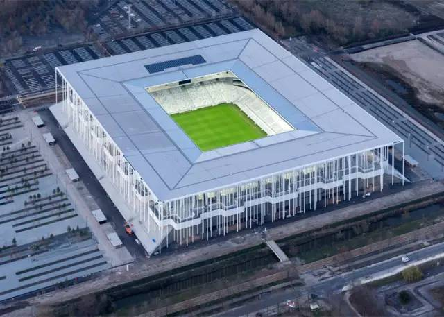 波尔多足球场,由900多根白色柱子支撑看台和屋顶(图源:Herzog&de Meuron)