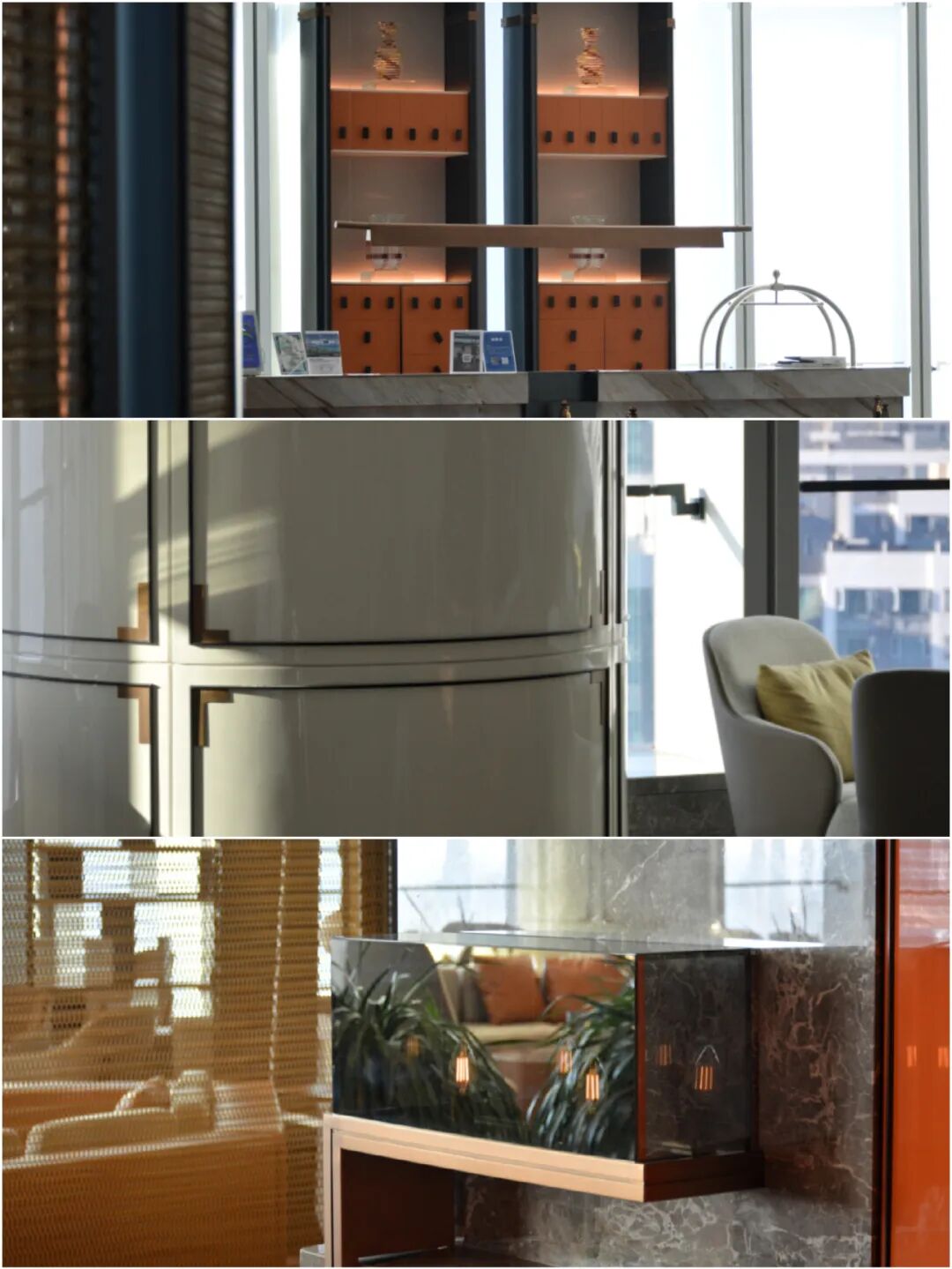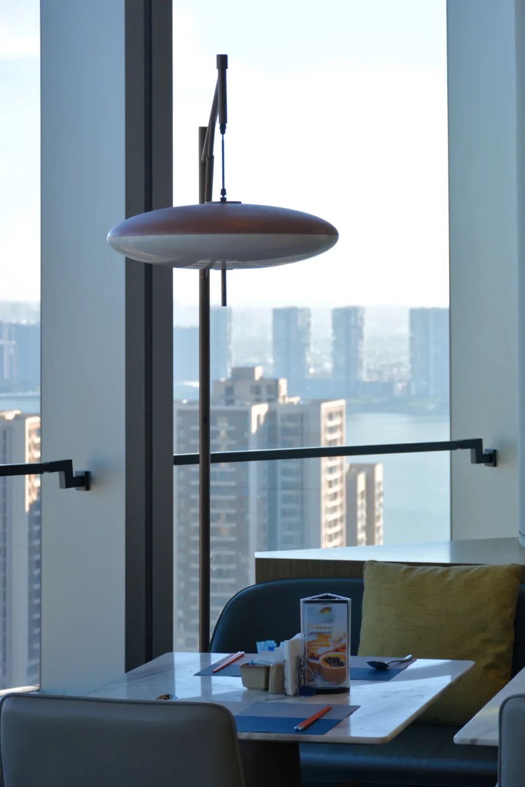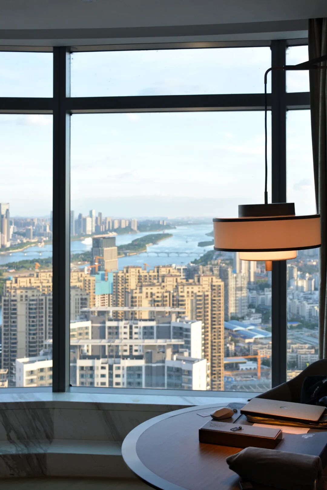 高空大堂的优势之一是景观,不过不是大堂吧或接待区域中朝南的方位:长沙城内的高层建筑密度之高,让非面朝湘江角度的景观,大致成为了“你高我更高”的工业奇观。
