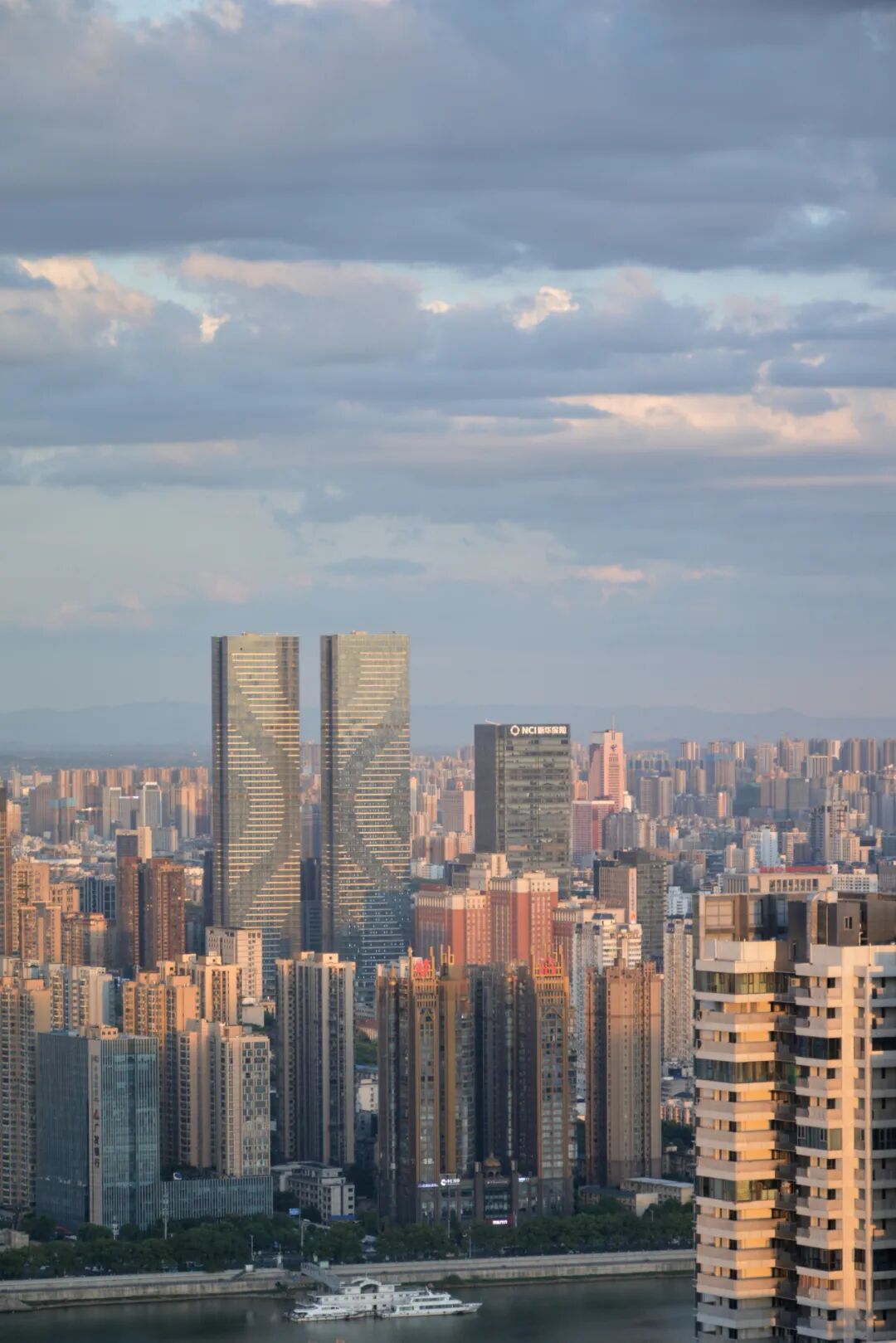 从酒店遥看湘江对岸。