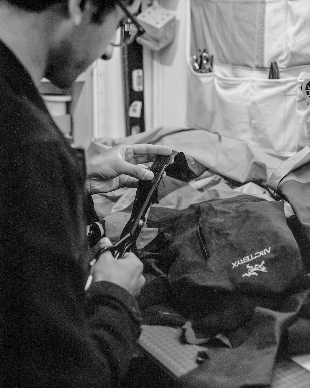 最开始,Jaimus会在eBay、 Depop等二手交易平台上寻获原材料。渐渐地、身边的朋友和家人有任何破损的、不想要的衣物都会丢给他。而如今,像Arc’teryx、Nike、Patagonia、Carhartt等运动和户外服饰品牌,不仅会把损坏或超出保修期的产品寄给Jaimus作为创作材料,更纷纷向他抛出橄榄枝,寻求多样化的合作。