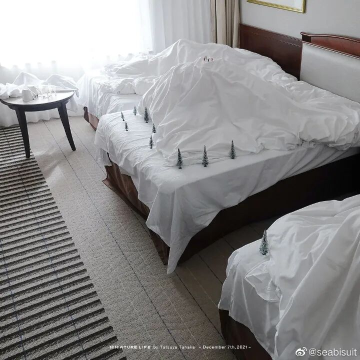 △微缩景观艺术家田中達也在隔离酒店创作的作品