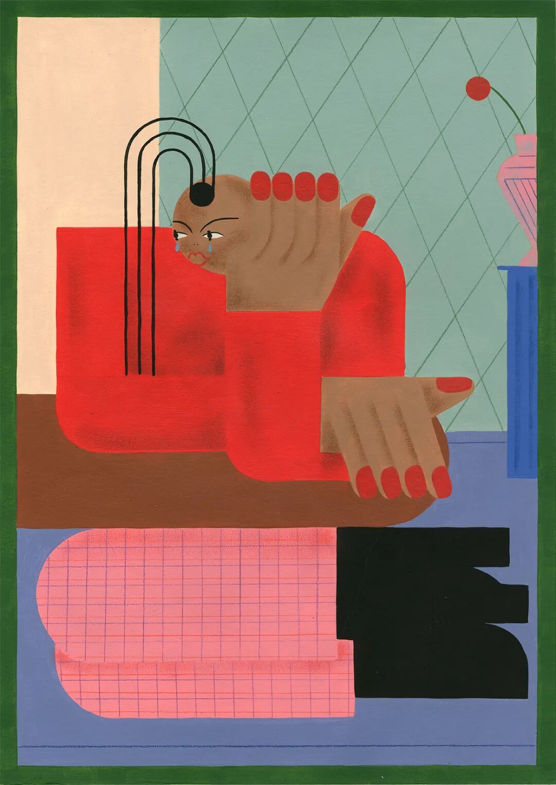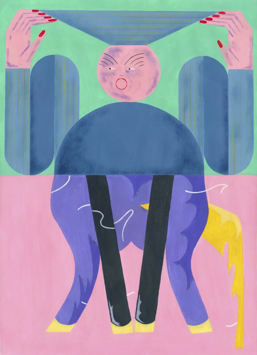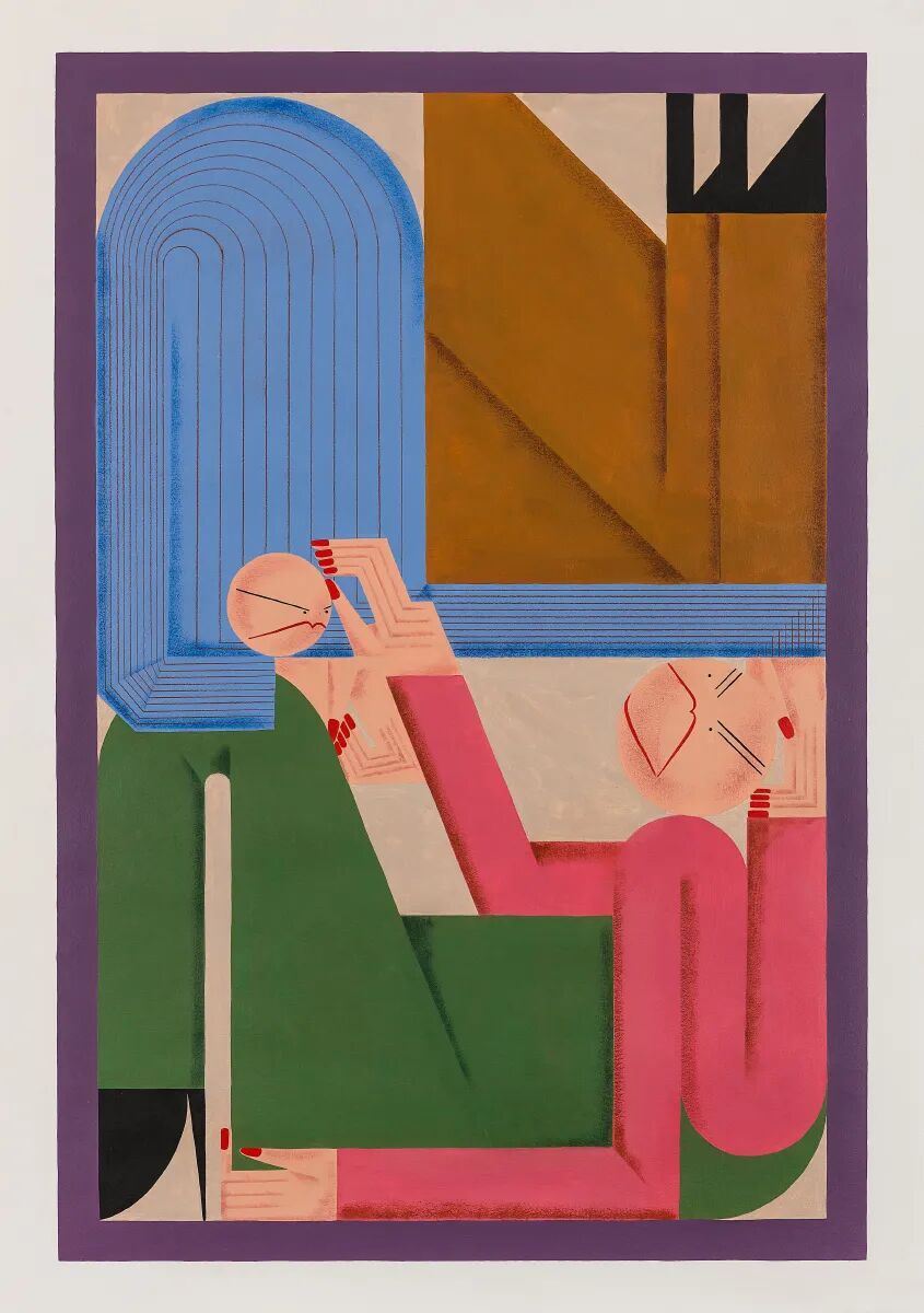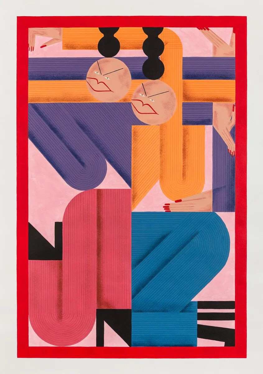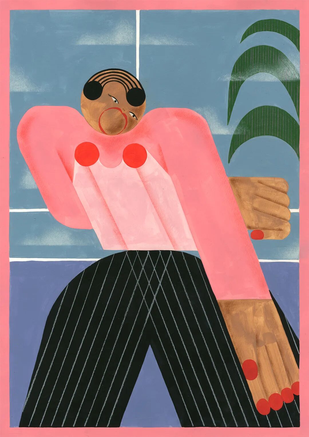 在 Stefhany 近期的作品中,她深受平面设计师和视觉艺术家 Camille Walala 影响,不管是电脑创作还是手绘,她的作品则更多倾向于使用几何线条和块面进行对象表达,与之前的作品相比,整体风格上并无强烈的割裂感和刷新感,更像是自热而然的延续,只是在很多作品中更能明显感觉到她在自我和特殊群体内心世界的表达欲望。