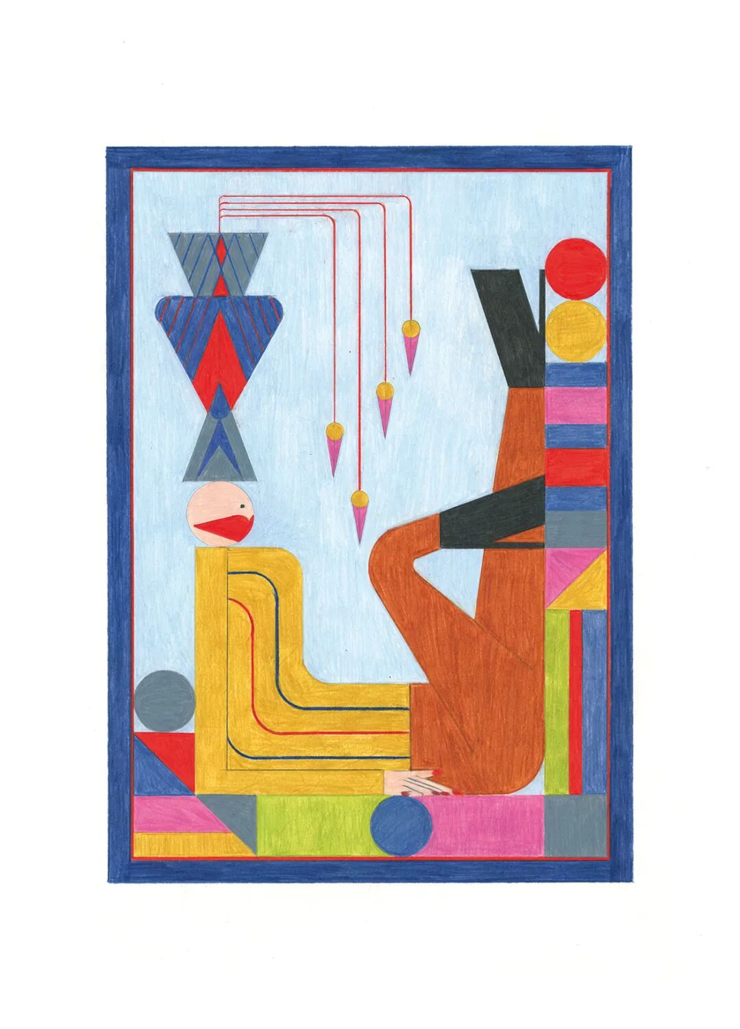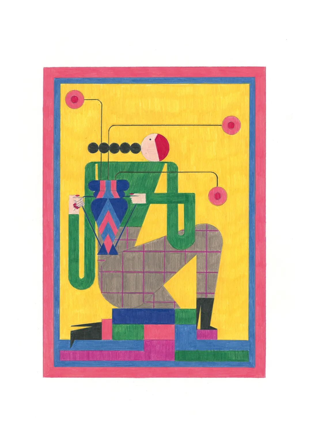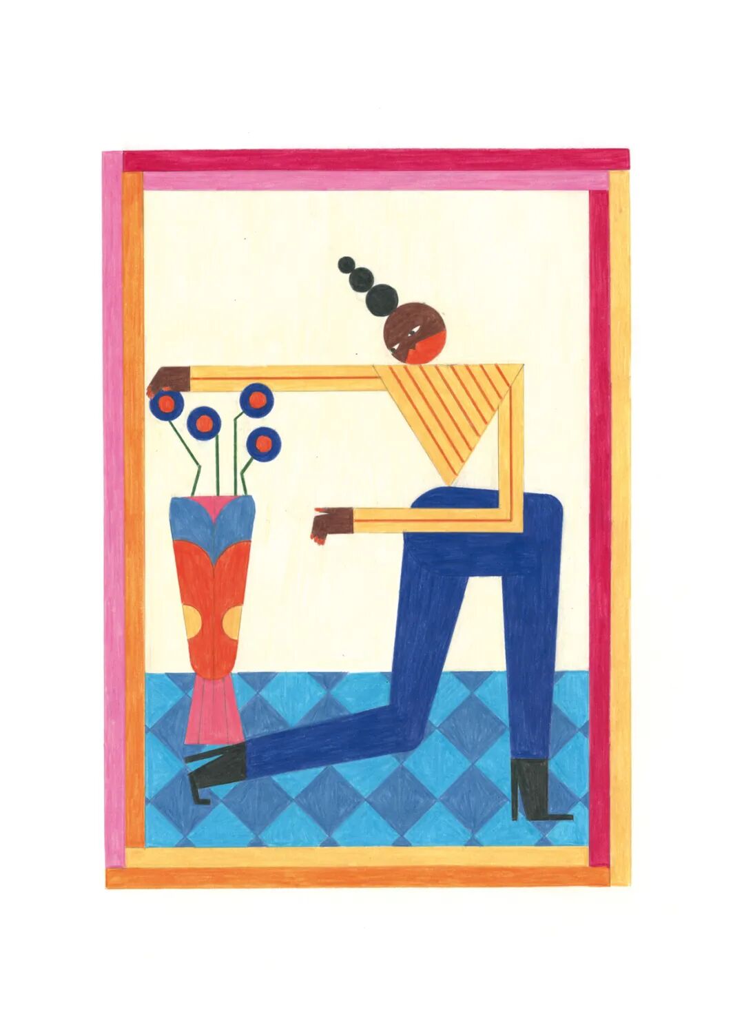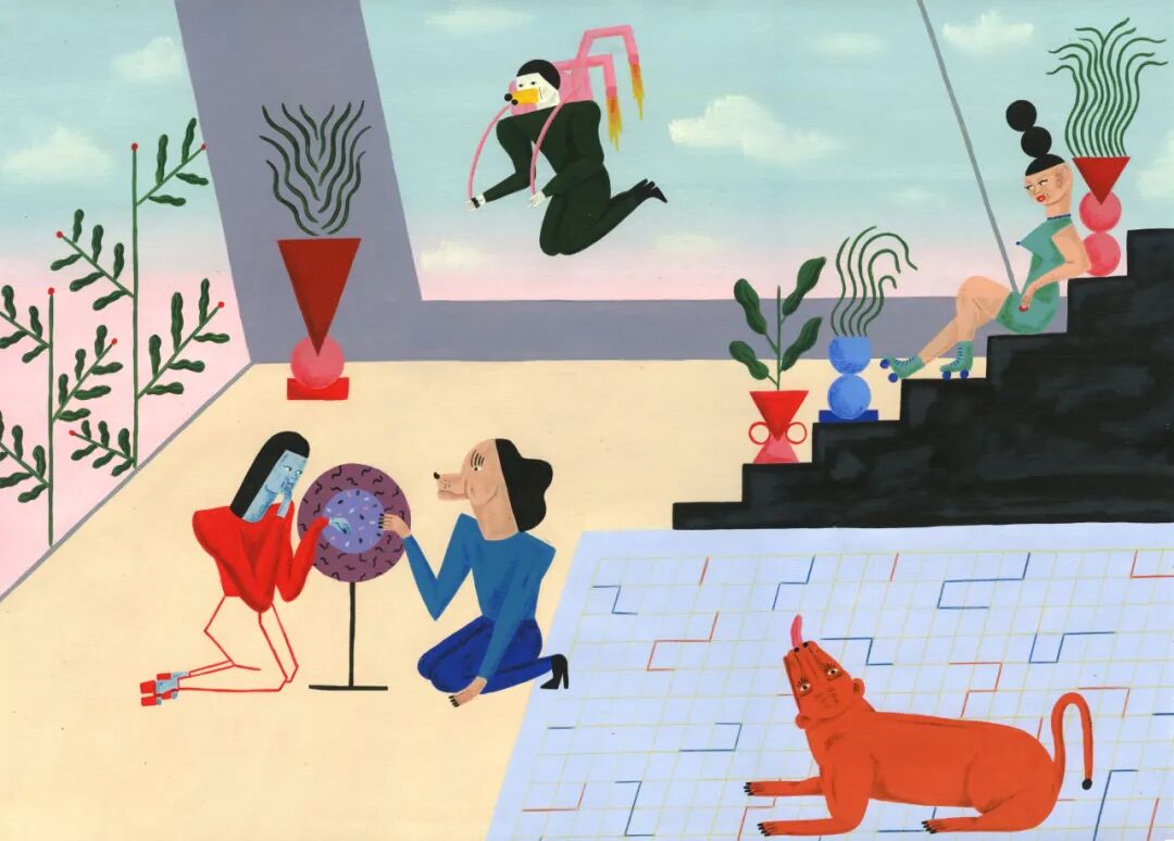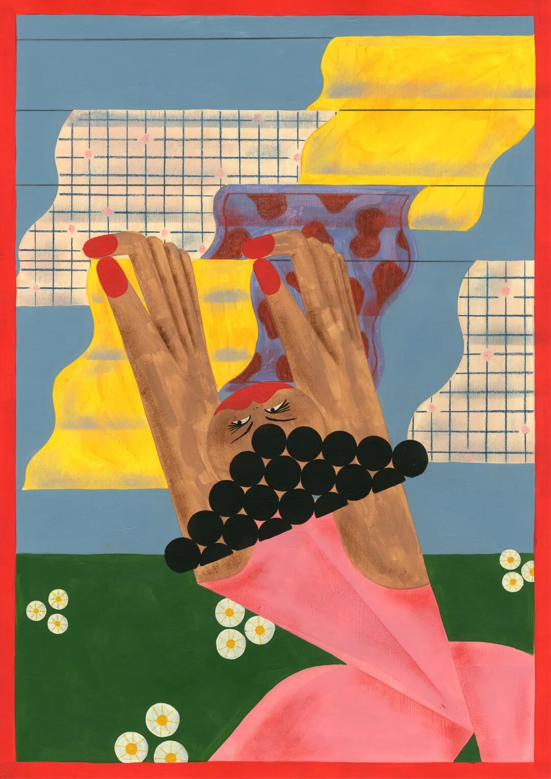 在 Stefhany 近期的作品中,她深受平面设计师和视觉艺术家 Camille Walala 影响,不管是电脑创作还是手绘,她的作品则更多倾向于使用几何线条和块面进行对象表达,与之前的作品相比,整体风格上并无强烈的割裂感和刷新感,更像是自热而然的延续,只是在很多作品中更能明显感觉到她在自我和特殊群体内心世界的表达欲望。
