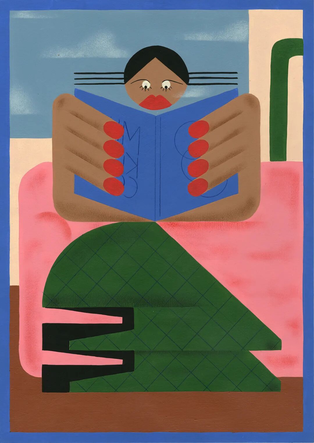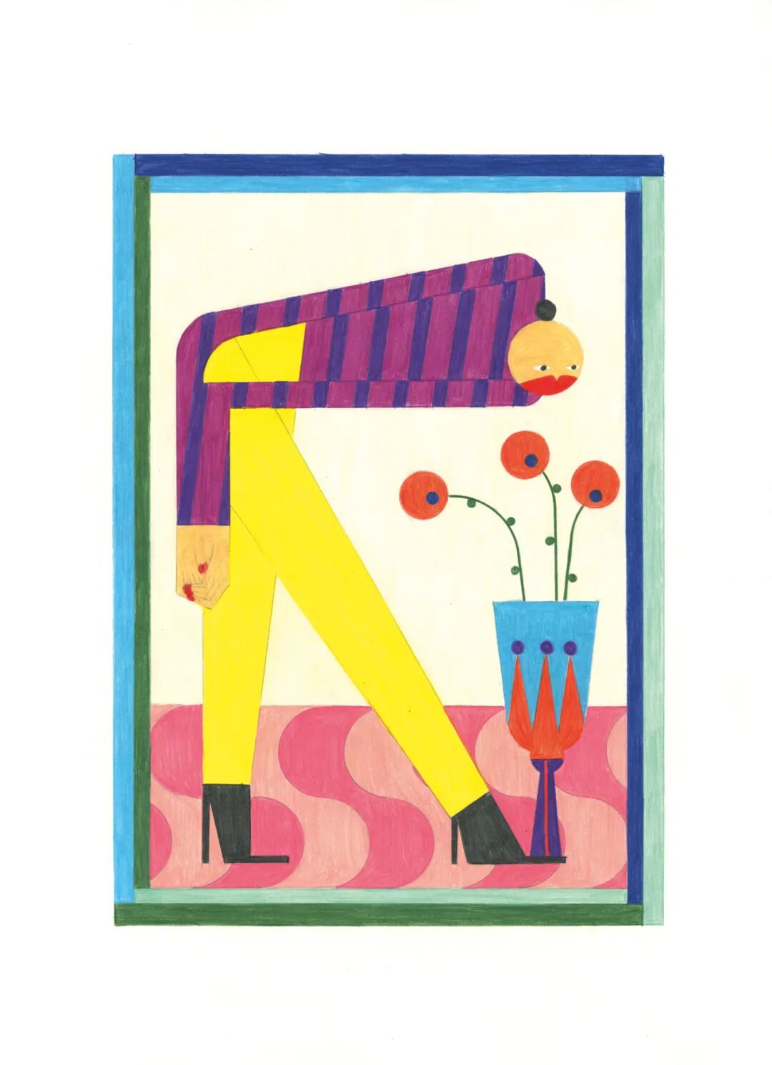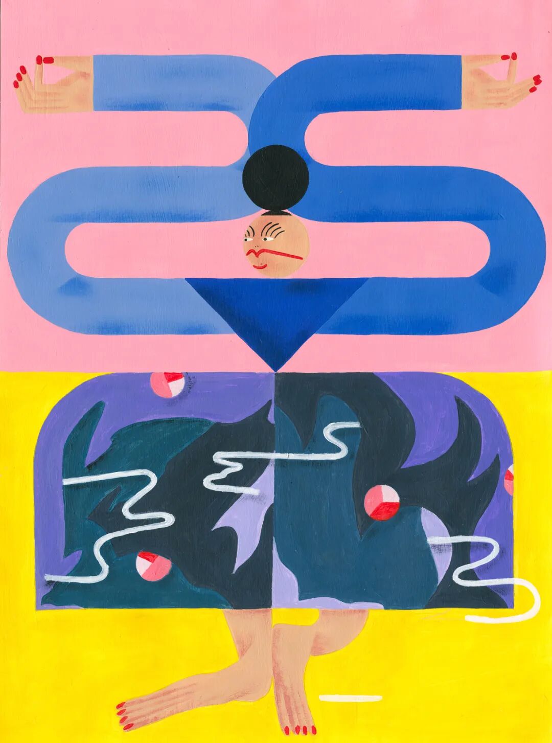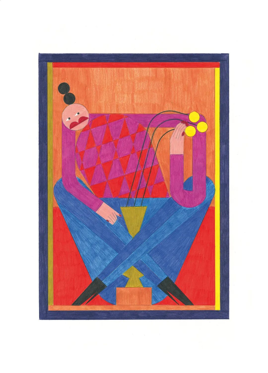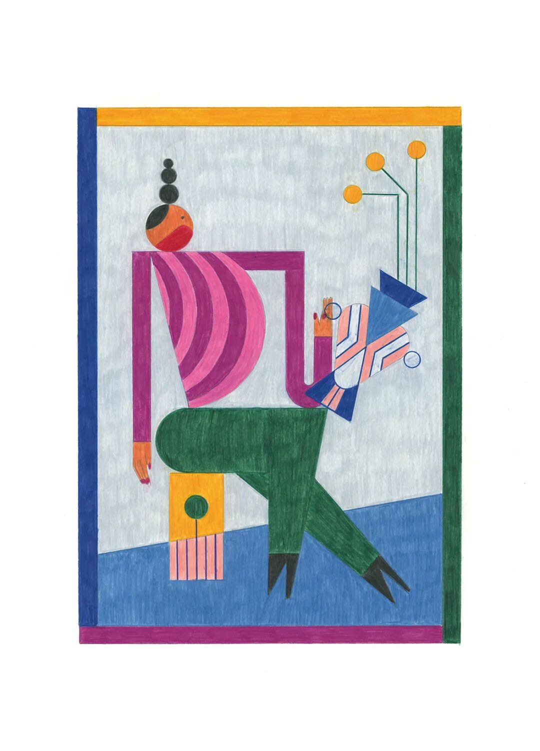 在 Stefhany 近期的作品中,她深受平面设计师和视觉艺术家 Camille Walala 影响,不管是电脑创作还是手绘,她的作品则更多倾向于使用几何线条和块面进行对象表达,与之前的作品相比,整体风格上并无强烈的割裂感和刷新感,更像是自热而然的延续,只是在很多作品中更能明显感觉到她在自我和特殊群体内心世界的表达欲望。