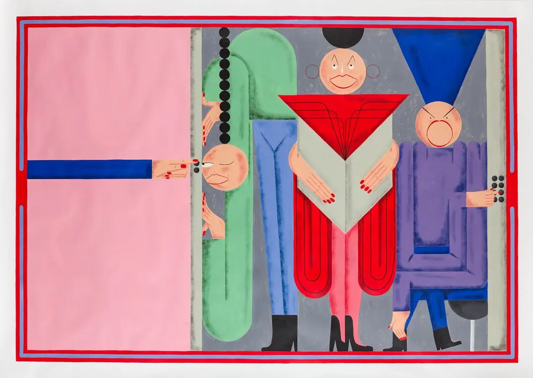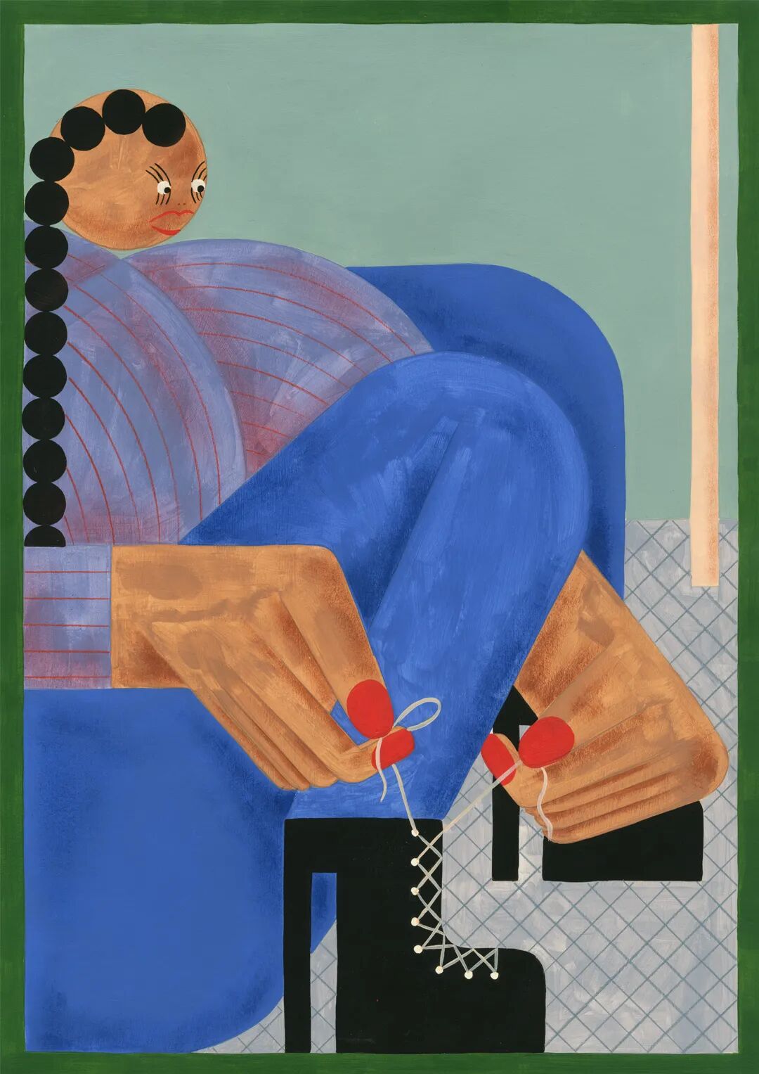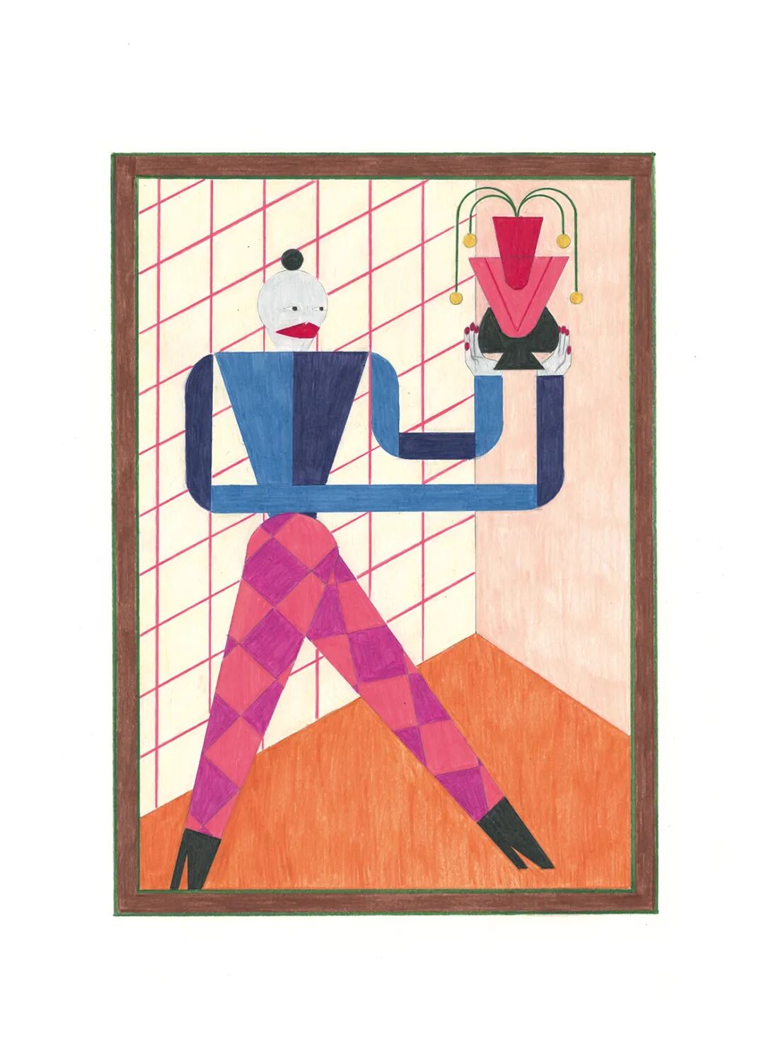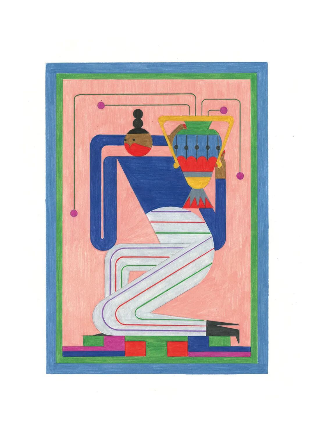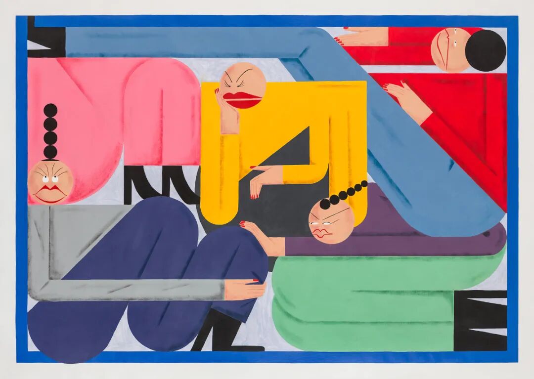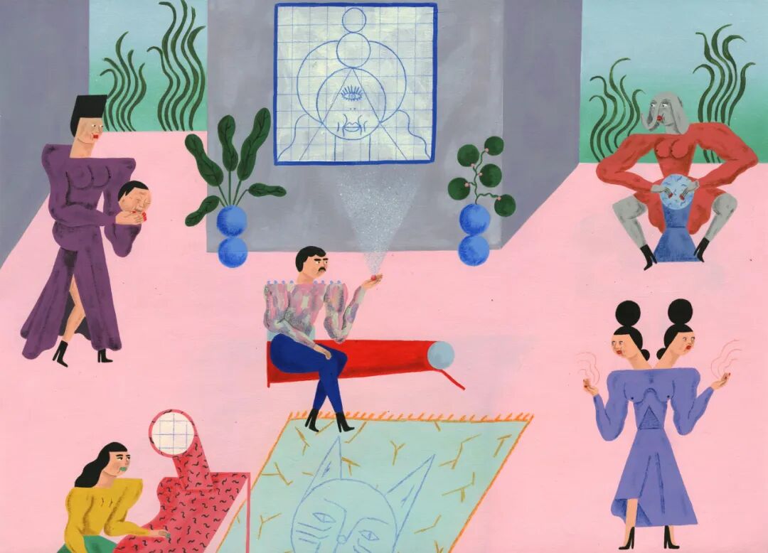 在 Stefhany 近期的作品中,她深受平面设计师和视觉艺术家 Camille Walala 影响,不管是电脑创作还是手绘,她的作品则更多倾向于使用几何线条和块面进行对象表达,与之前的作品相比,整体风格上并无强烈的割裂感和刷新感,更像是自热而然的延续,只是在很多作品中更能明显感觉到她在自我和特殊群体内心世界的表达欲望。