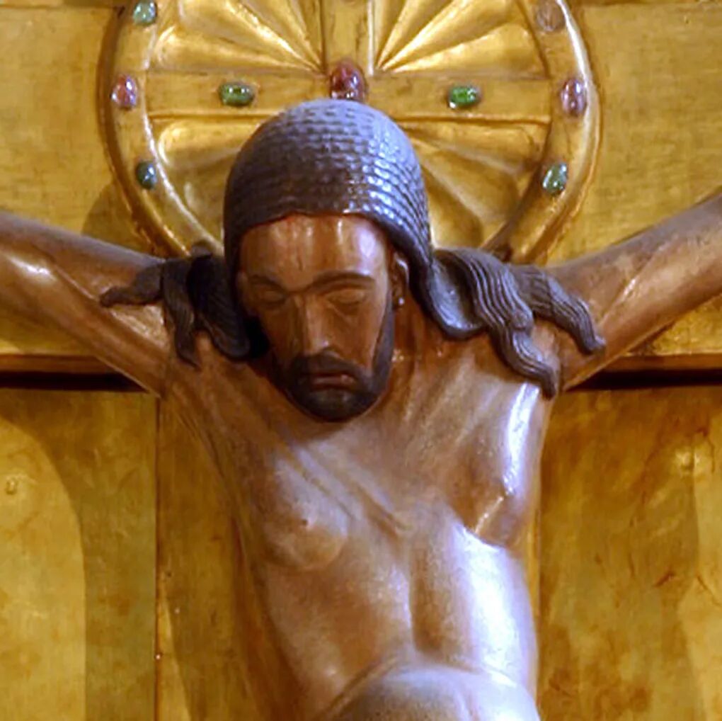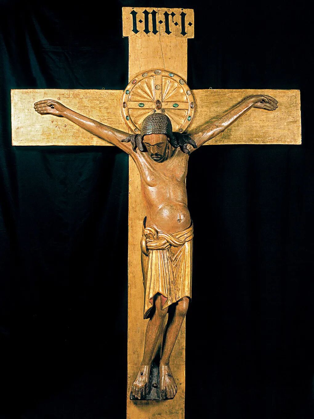 大家好!今天给大家介绍收藏于德国科隆大教堂内的橡木雕刻作品《格罗基督受难十字架像》,约创作于公元975-1000年。