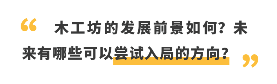 行业未来的潜能在于能够制作出区别于工业品的精品木作、开展手工课堂等科普教育,还可以做知识传播,如制作类博主。
