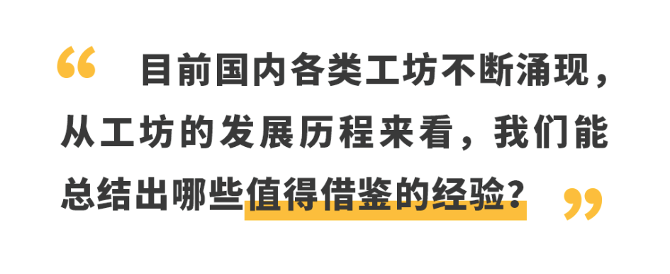 从历史的角度看待国内工坊发展,可以说几乎没有商业成功案例,甚至存活率也比较低。这是因为创建工坊的大部分是业余选手,并未从事过系统的工作,甚至没有太多技术积累,所以在摸索的过程中,背负着较重的场地和投入负担