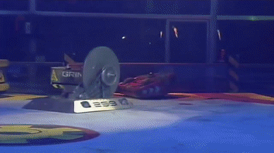 这些机器人其实像小车一样,底盘很低,因为要打擂嘛,重心不能高。但他们个个身怀绝技,有的头顶斧子,像游乐园的海盗船那样劈来砍去,有的戴个类似叉车的零部件,一用力就可以把敌人顶飞,还有镶着电锯一样的大盘的,就滴溜溜地转,特别凶。