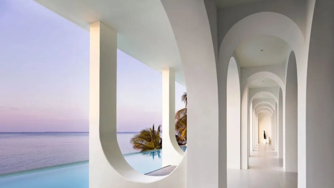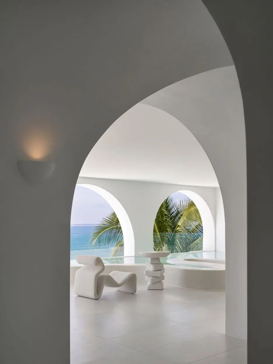 埂上设计用纯白的拱形主题,打造这间位于海南的梦幻般的精品酒店