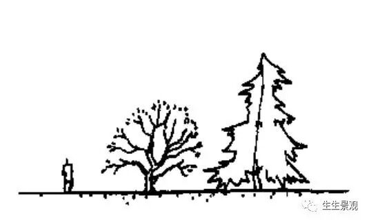 ▲中层树,较低的落叶和针叶树种,从近地面处到眼高处形成树冠。在开旷空地上或低空种植中层树以形成屏障,背景及视觉趣味点。