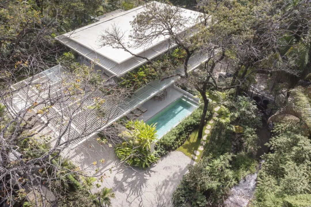 哥斯达黎加当代热带住宅坐落在诺萨拉蓝色地带社区的中心,在大自然中给住户带来温暖和舒适。该住宅的客户来自加拿大,希望在住宅内能够远离冬季的寒冷,享受热带天气,该项目非常明确地希望创造一个室内外融合的绿洲,因此必须尊重现有的树木和该地产拥有的天然小溪。