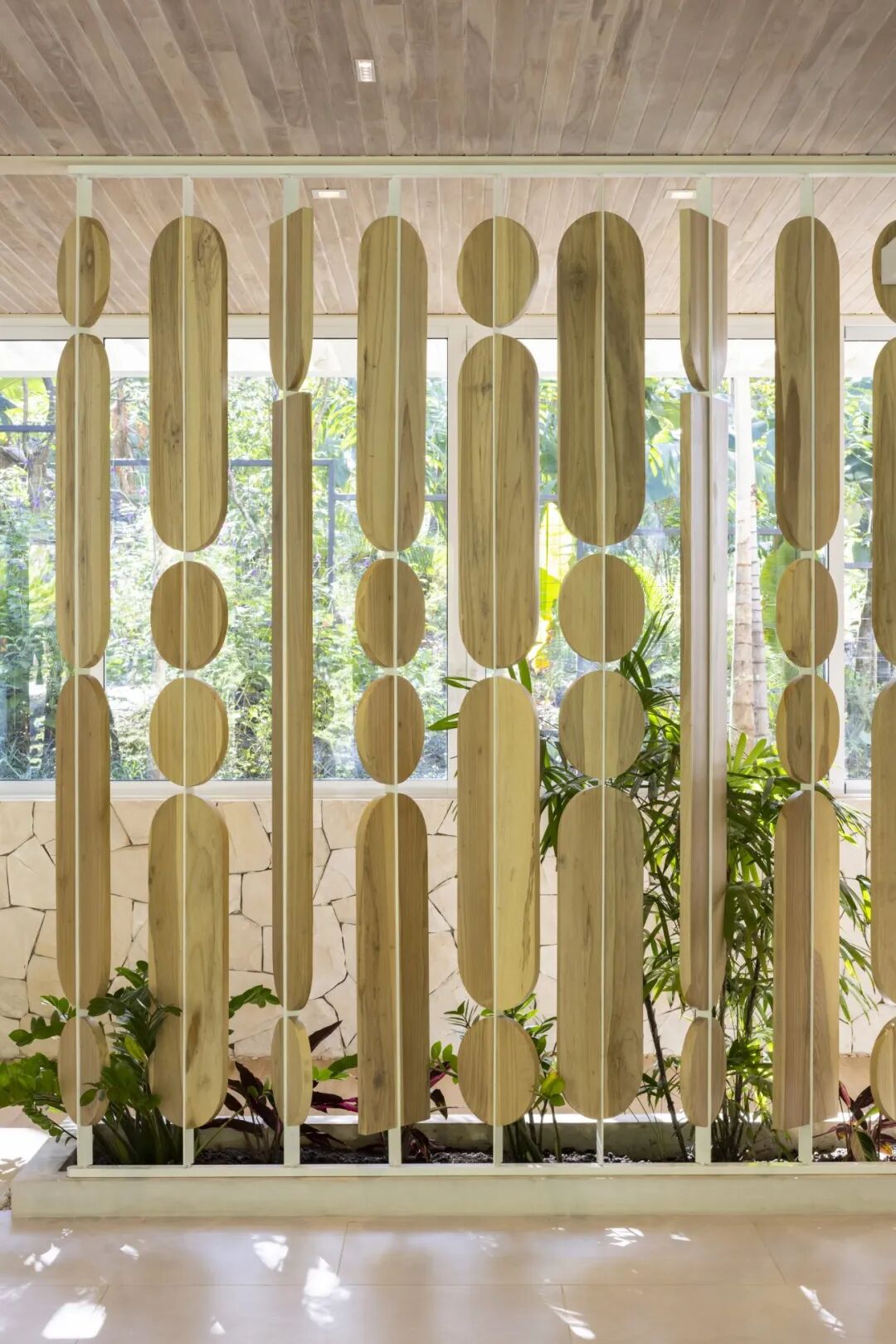 建筑物的钢结构是先在场外预制好再安装的,天花板和地板使用漂白柚木,大型铝窗系统可以完全打开和关闭,以实现空间的充分灵活性。大多数厨房、浴室等室内家具都是在当地采购或制造的,目的是将当代建筑材料与当地工艺相结合,用于室内装饰和家具制造。