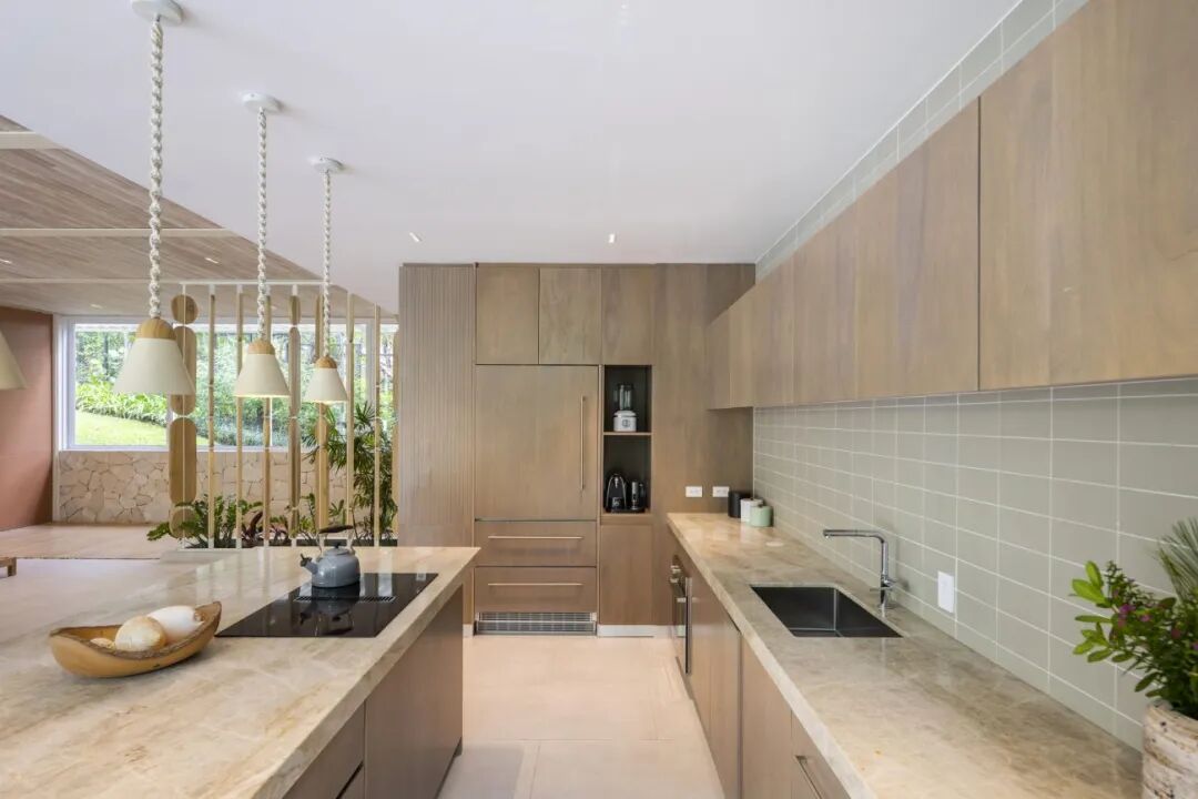 Saxe室内设计团队与建筑部门并肩合作,创造了一个由内而外具有凝聚力的设计,所有材料从一个空间流向另一个空间,创造出一个轻盈、通风、现代的热带建筑。在我们的设计指导下,当地工匠参与了家具的创作,从而创造了一种真实感和当地责任感。所有家具和饰面的舒适性和耐用性对于一家人度假来说很重要。