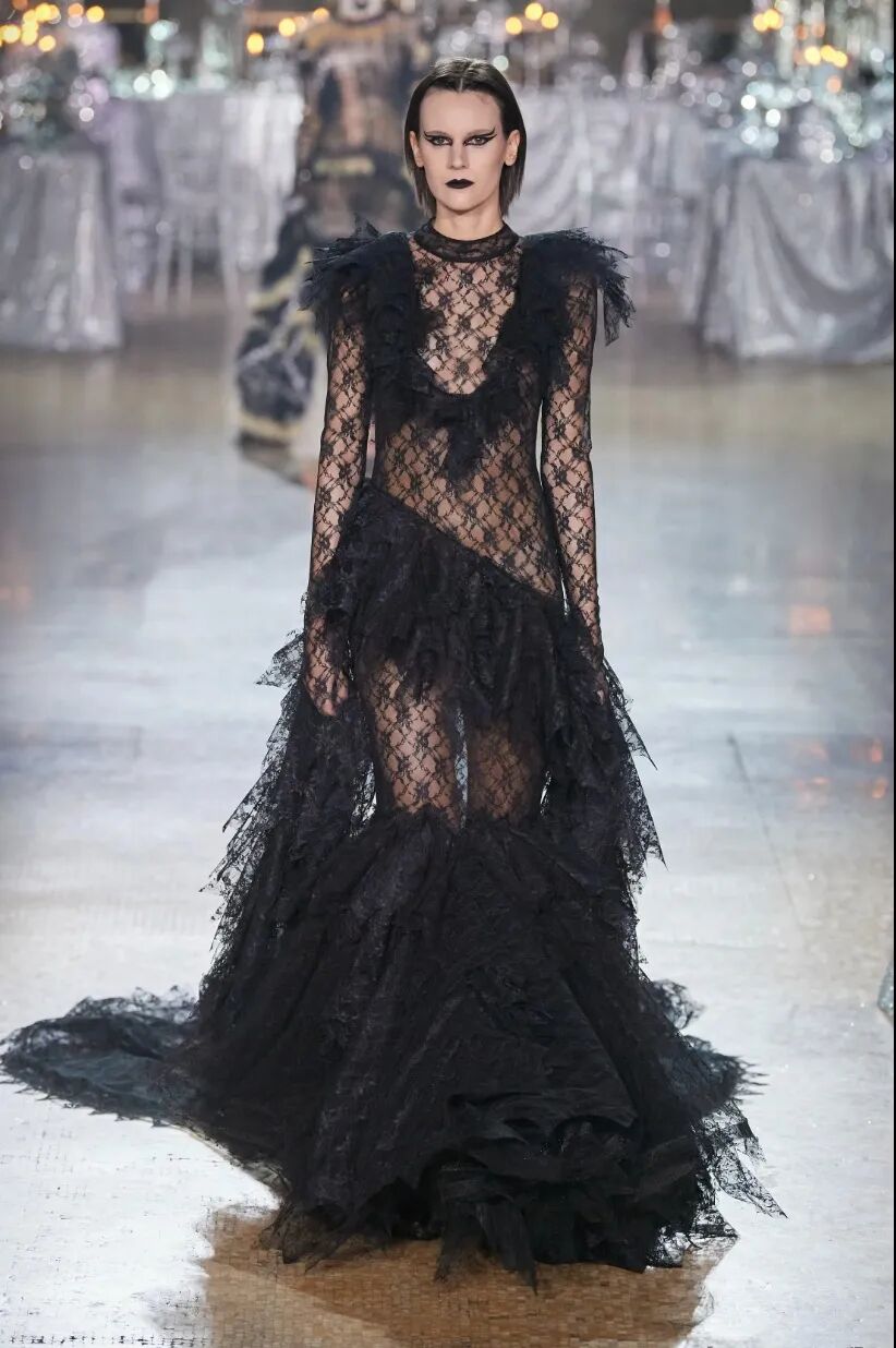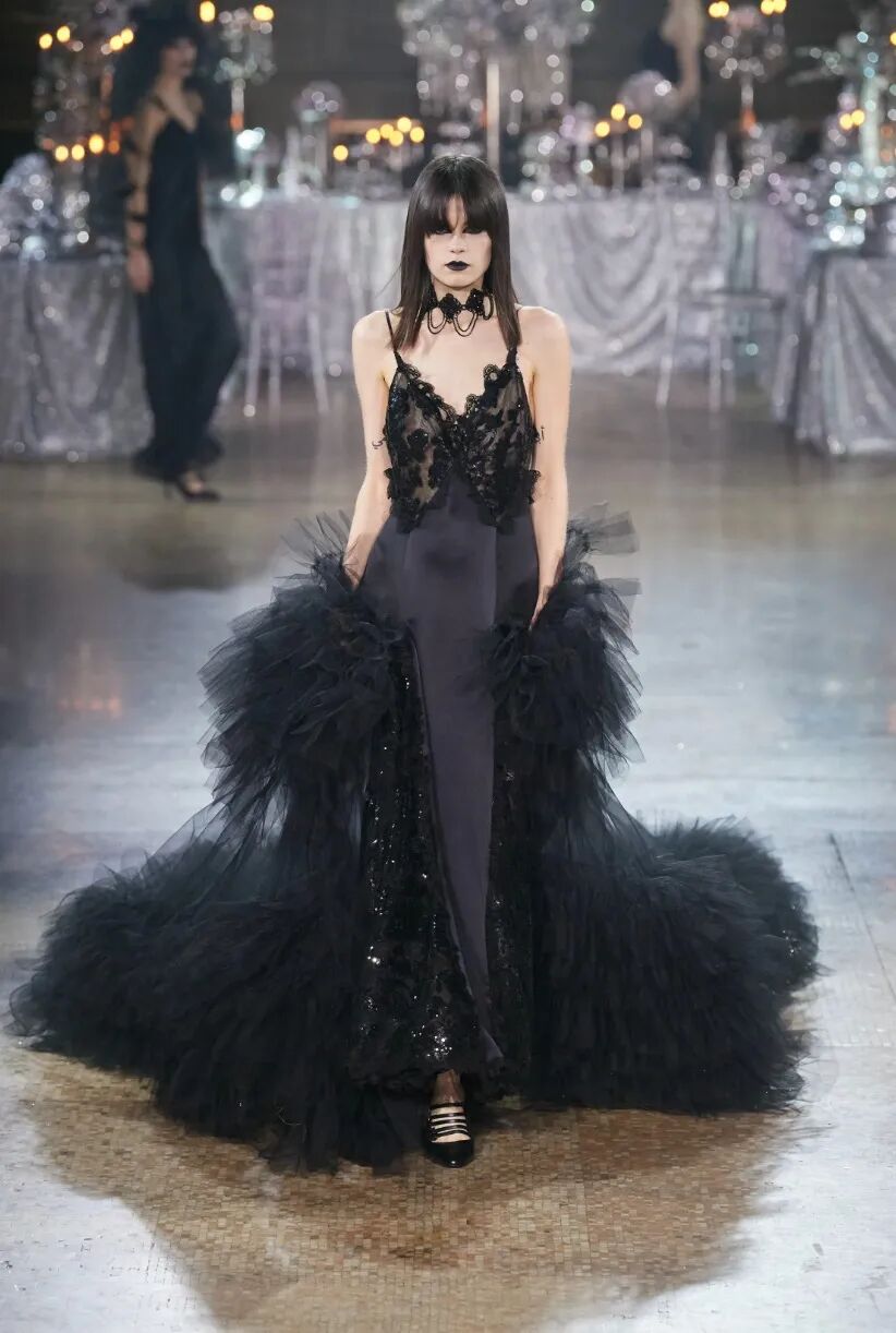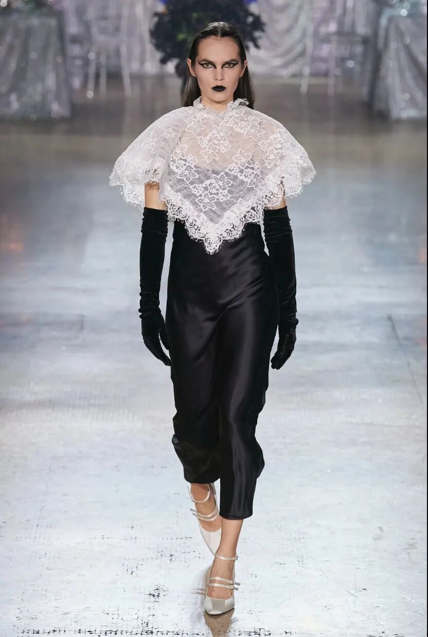 最近网飞新剧《Wednesday》女主角星期三暗黑哥特式的衣品一下就戳中了年轻人要特立独行,又要有点丧的时装风格。