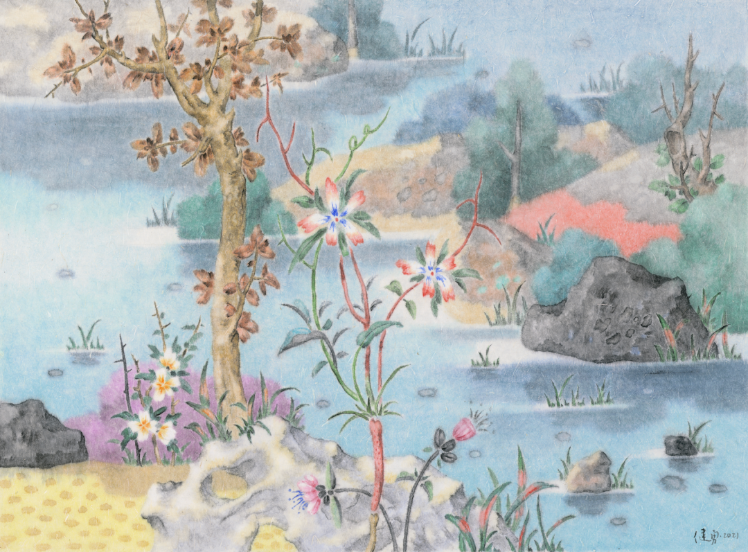 刘天怜 遐想 2022 纸本绢本设色 D.110cm