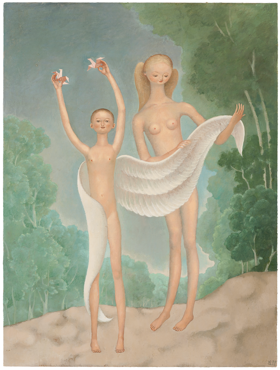 颜秉卿 姐姐弟弟 2022 木板坦培拉 85×64cm