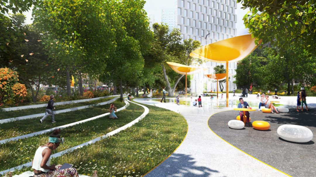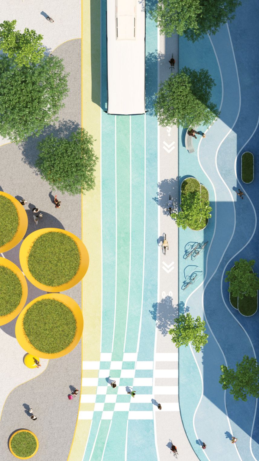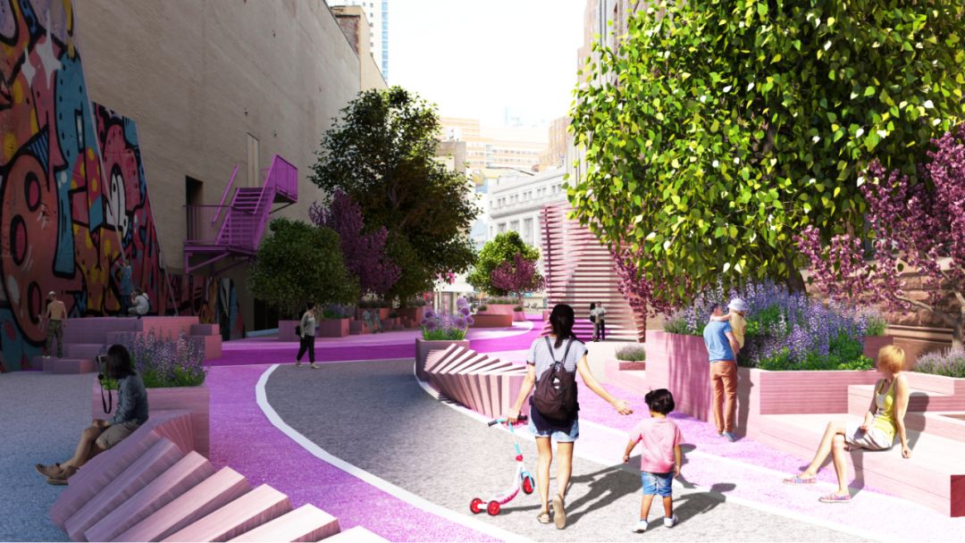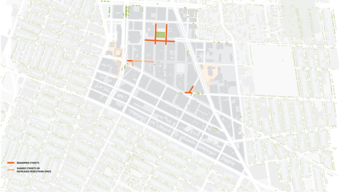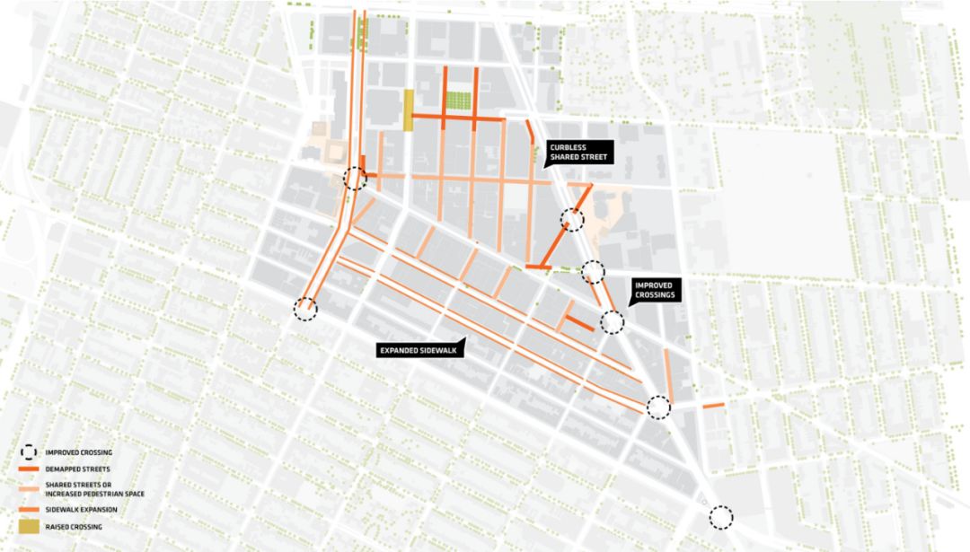 BIG与WXY建筑事务所合作,对布鲁克林的市中心进行改造,该愿景主要集中在行人体验上,被描述为一个“娱乐空间”,旨在通过对公共领域,街景和绿色基础设施的提升,使市民可以聚集在一起并享受户外活动,为行人和骑行者提供更绿色,更安全的环境。