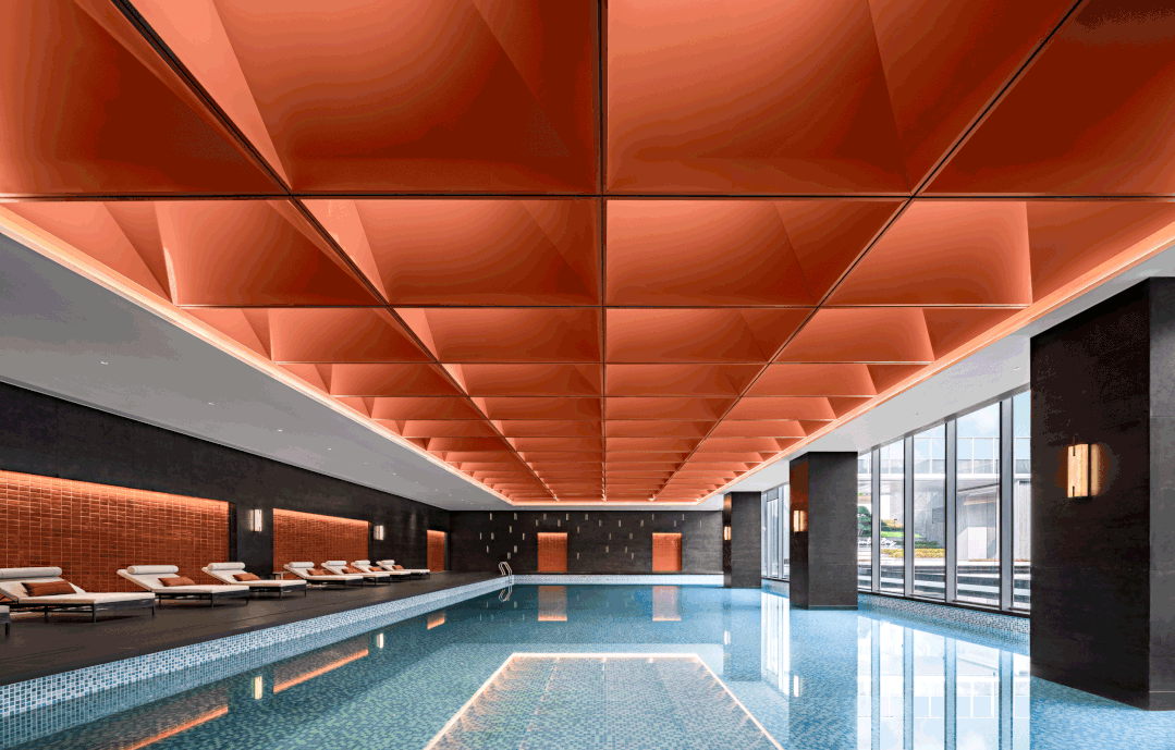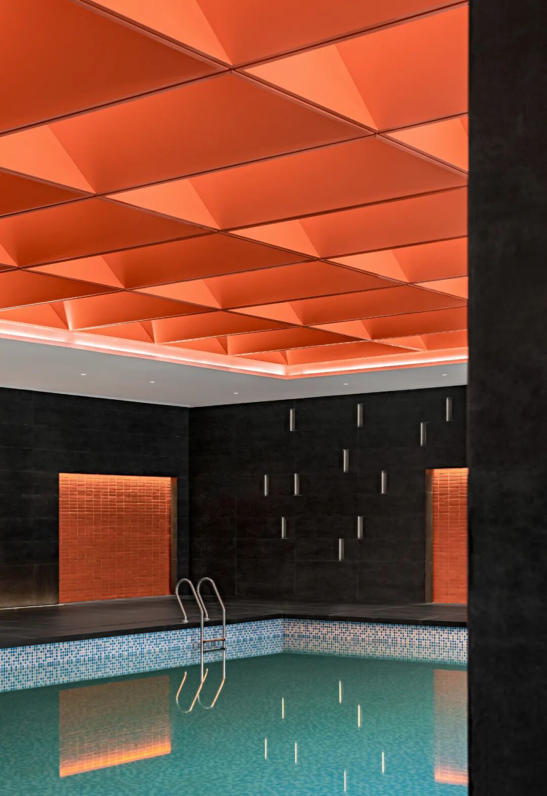 用橙色来营造运动的动感氛围,天花做了特殊的设计,能将天光引进来,自然与技艺的完美交合。