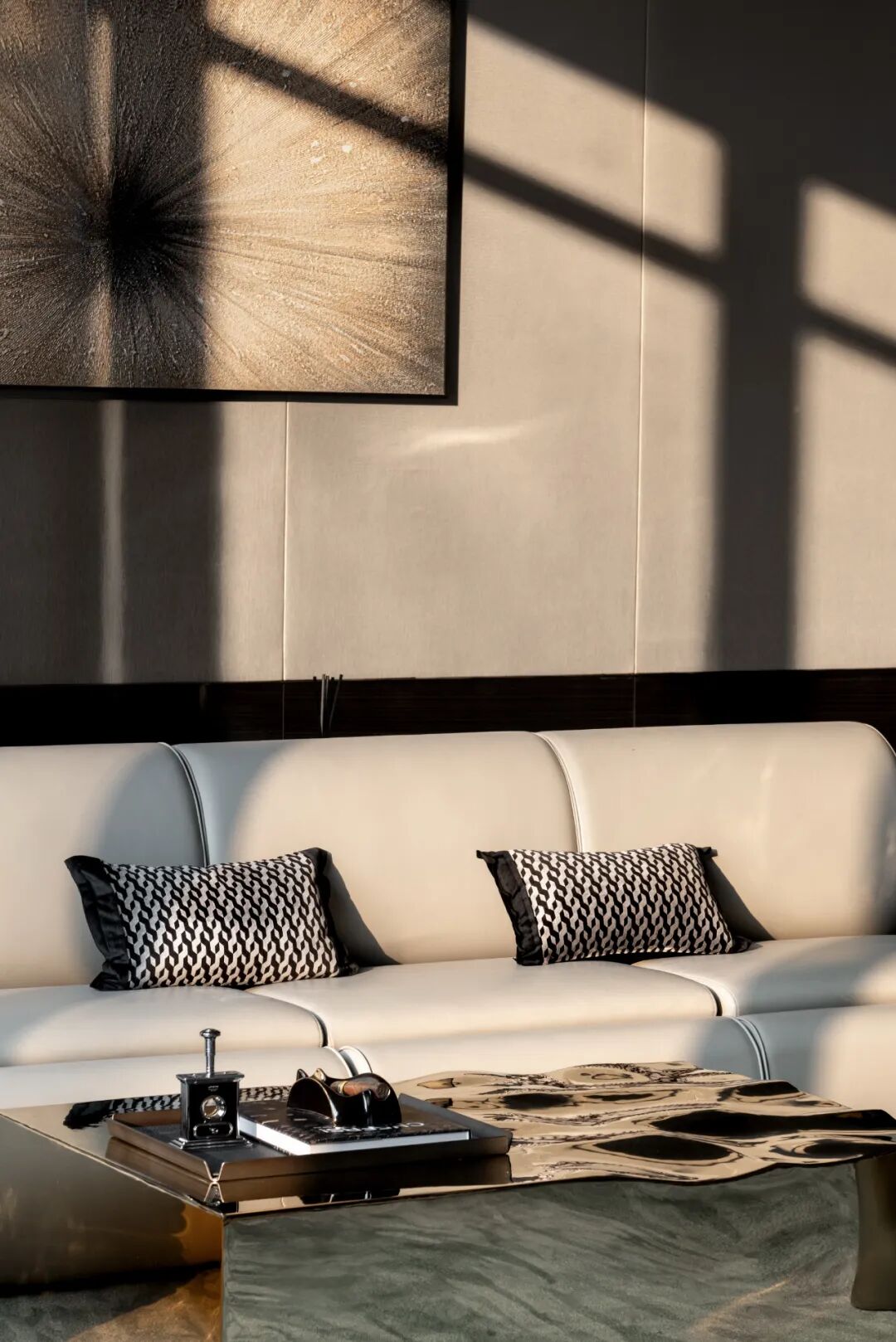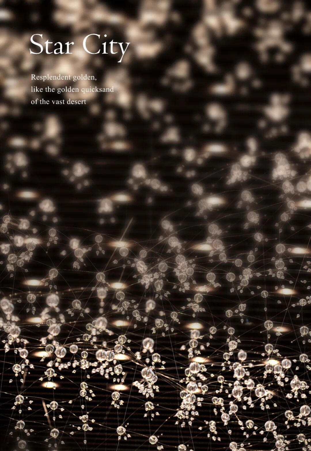 阳光洒进来,璀璨金黄,犹如茫茫大漠的金色流沙,天花上的点点灯光,仿若沙漠黑夜里灿烂的漫天繁星。归家从这一刻开始,感受到尊贵唯一的仪式感。