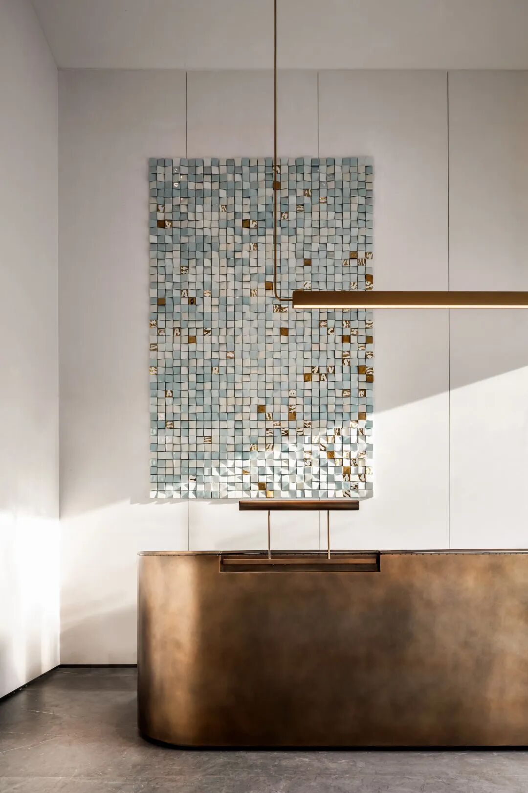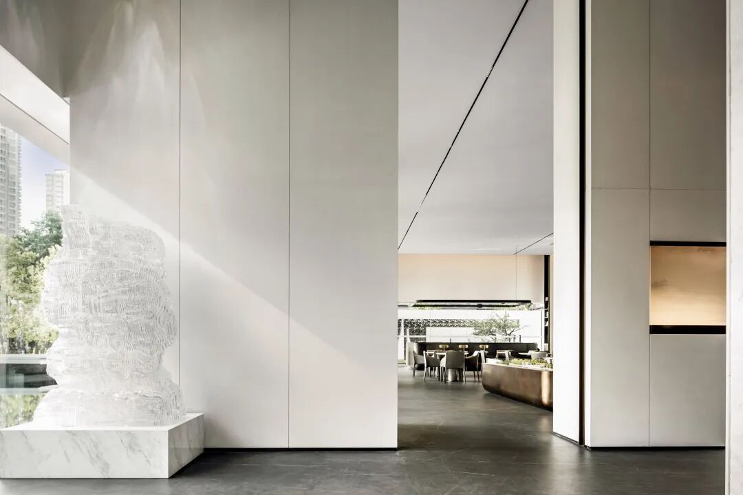 温润的大理石,厚重仿古的金属,无一不在诉说空间的静谧与诗意。内与外、虚与实、刚与柔...