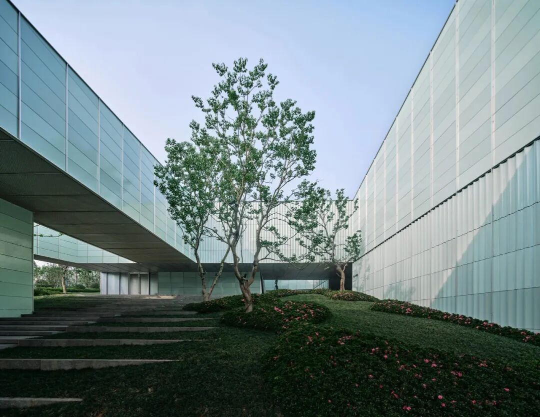 借鉴了中国传统园林的风格,拥有一簇轻盈、单坡的形式