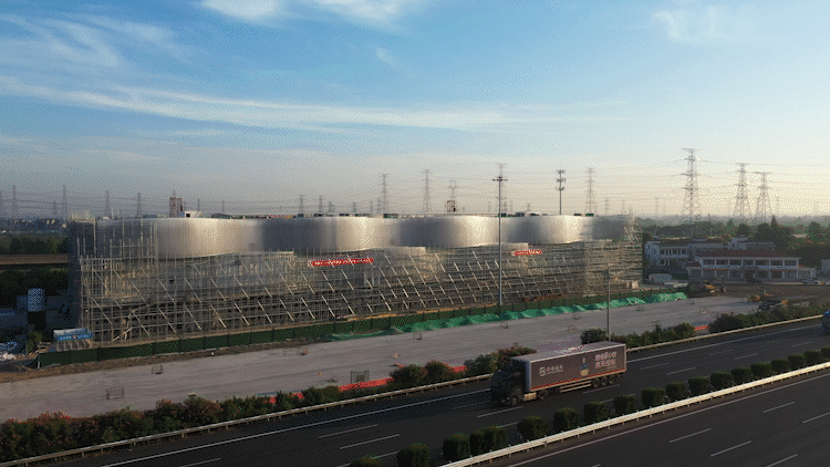 8月,嘉兴服务区综合体进入幕墙吊装阶段。大象设计于2021年8月在公开招标中胜出,以全过程咨询形式承接服务区南北两个地块的工作。设计开创性地采用底层架空停车设计,为过往车辆提供更为人性化的服务。综合站房突破常规服务区布局,以高敞明亮的中庭组织多业态空间。北区“南湖映波”以立面曲面光影的流动暗示水波之意,呼应杭嘉湖平原的自然风貌;南区“未来之舟”则回应嘉兴作为“红船文化发源地”的地域历史。