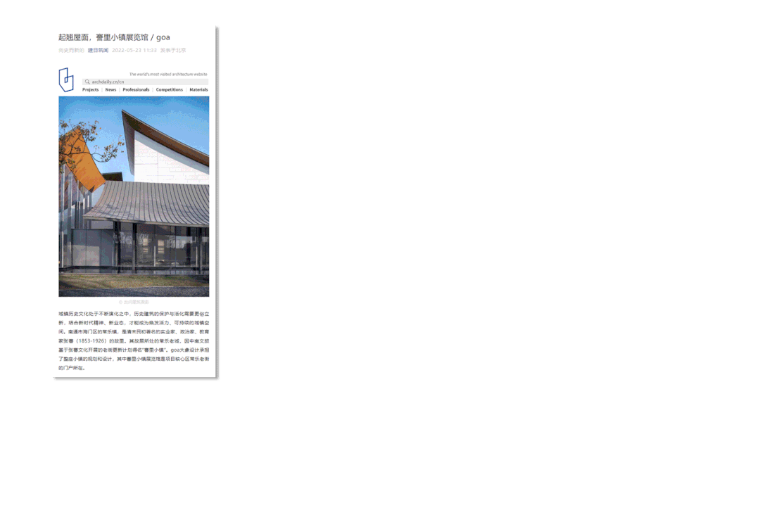 7月,总建筑师张迅、副总经理卿州作为杰出女性建筑师代表受邀参展由英国皇家建筑师学会RIBA China Chapter主办的建筑行业女性数字网络计划2022年度展览“她是一位建筑师”。goa作品「阿丽拉乌镇」及中式图书作品《再造桃源》(与中国美术学院李琰老师共同合作)分别参展专业设计项目板块及学术研究展区。