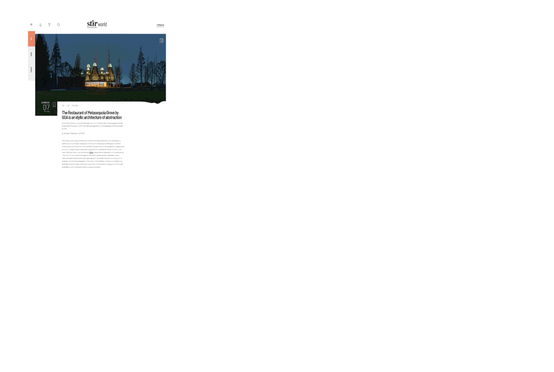 自获得A+双料大奖并顺利入围WAF及Dezeen Awards以来,「水杉林餐厅」持续受到多国建筑与设计媒体的关注。Dezeen、designboom、Elle Décor、STIRworld、Floornature等国际媒体纷纷发布专访特写文章。截至8月底,项目已在十余个国家的建筑杂志及网站发表,涵盖英、法、德、日、意、西、土等多个语种。